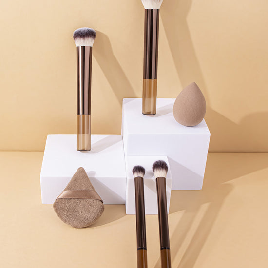 After dipping the brush into the product, gently shake off any excess powder. Apply makeup using a pressing and rolling technique (press and roll the foundation brush vertically, and blend the eyeshadow brush in a spiral motion). The aluminum-handled retractable brush uses a 45° angle to precisely contour the face, while the wooden-handled brush features a 32° anti-shake design for precise application.