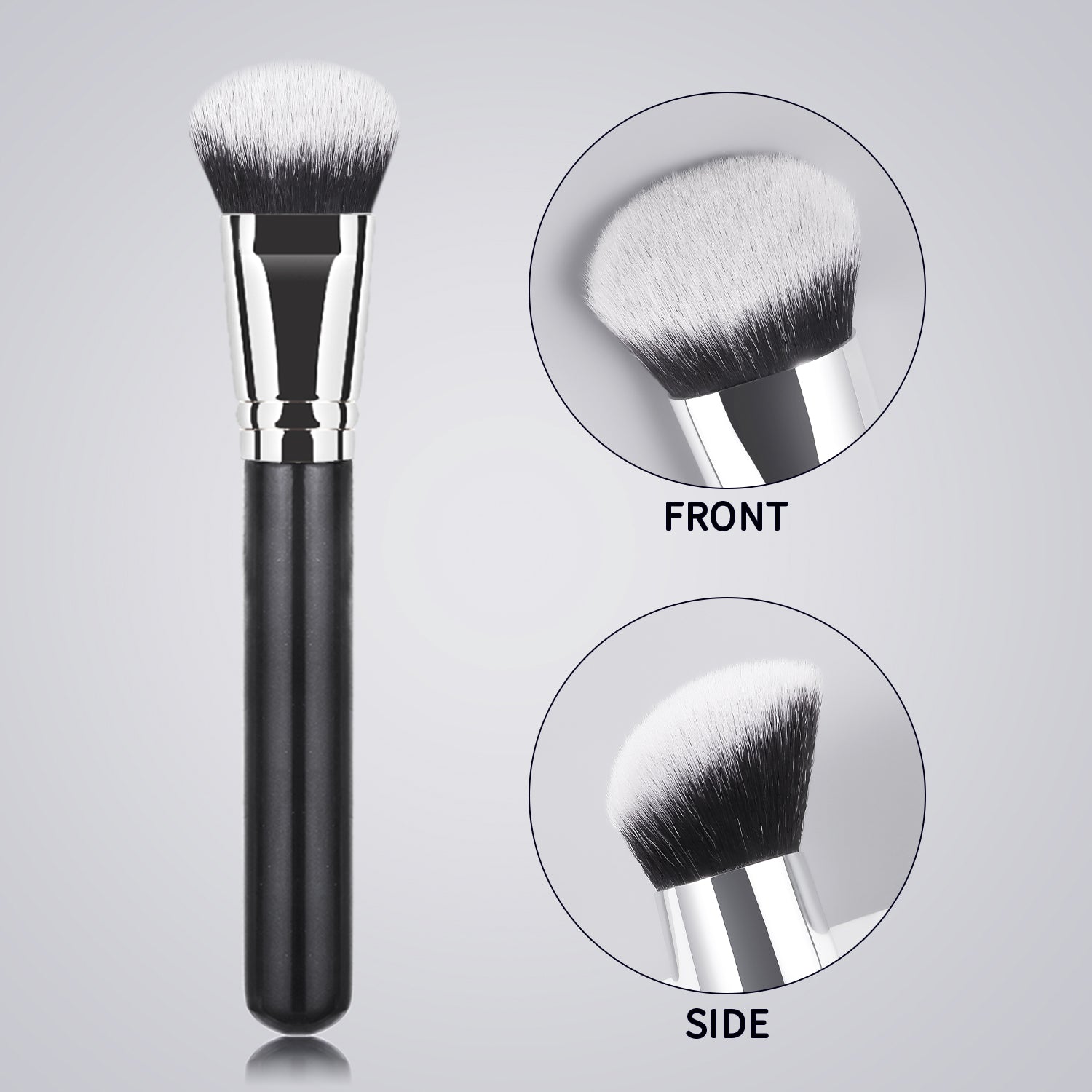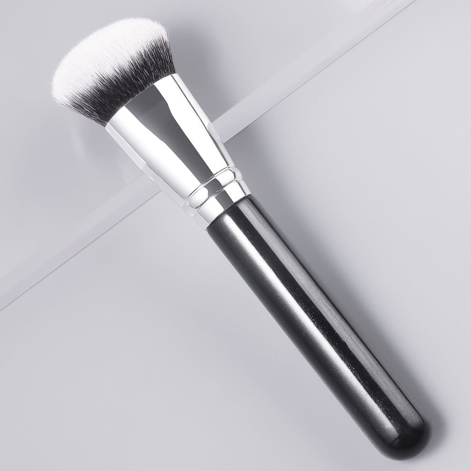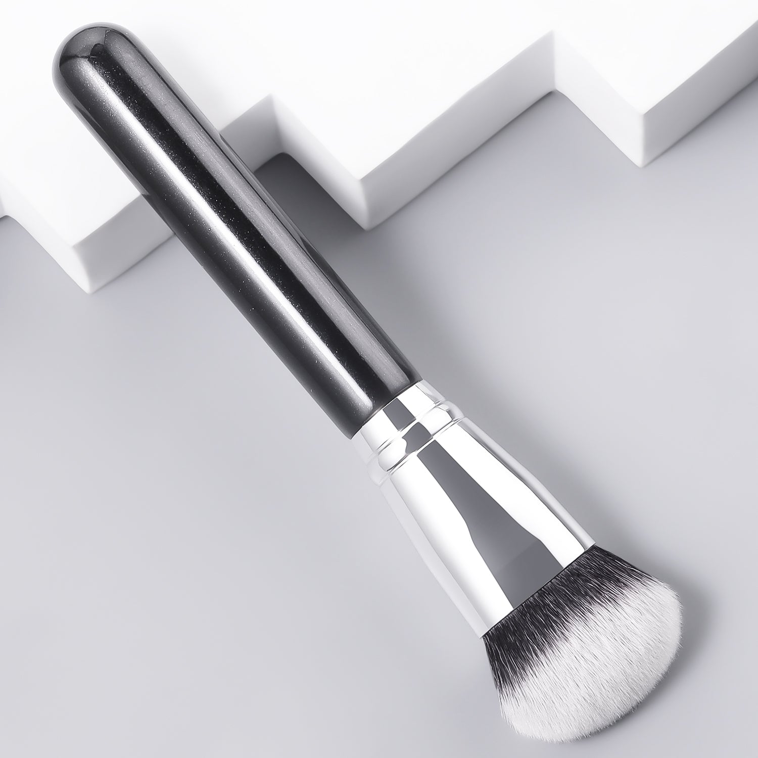 Premium Wood Handle + Glitter Accents • Face-Hugging Design • Cloud-Soft Nylon Bristles • 1-Minute Flawless Base