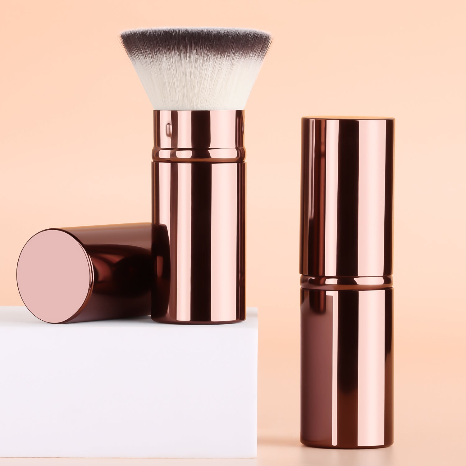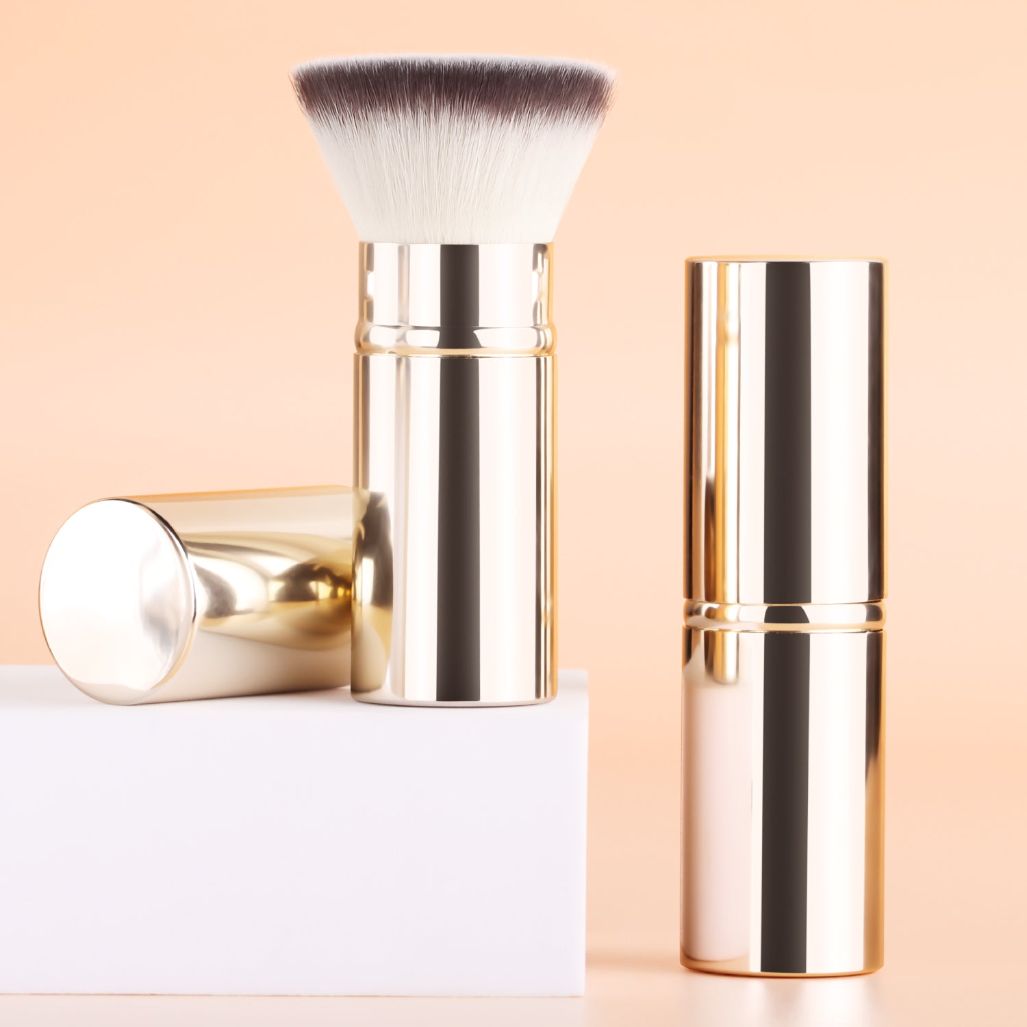 - **DUAL-PROFILE BRUSH HEAD:** Flat edge → liquid foundation; Tapered tip → eyeliner/wall detailing
