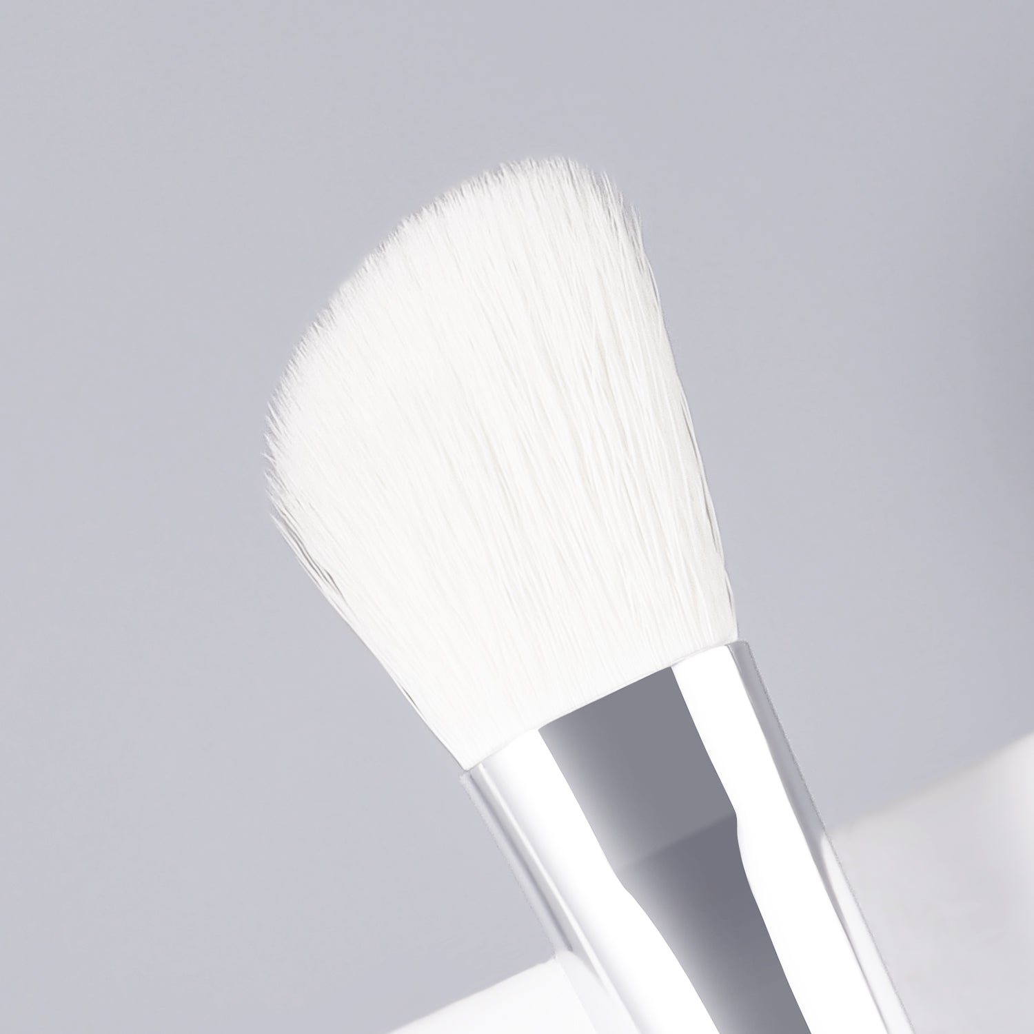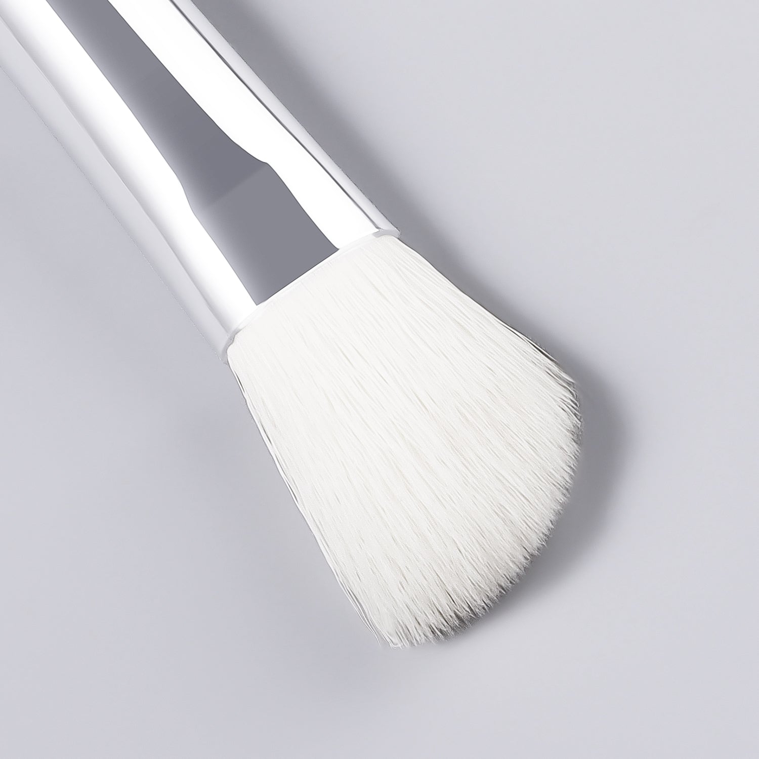 After dipping the brush into the product, gently shake off any excess powder. Apply makeup using a pressing and rolling technique (press and roll the foundation brush vertically, and blend the eyeshadow brush in a spiral motion). The aluminum-handled retractable brush uses a 45° angle to precisely contour the face, while the wooden-handled brush features a 32° anti-shake design for precise application.