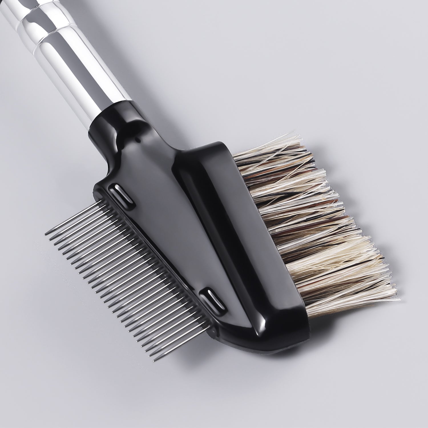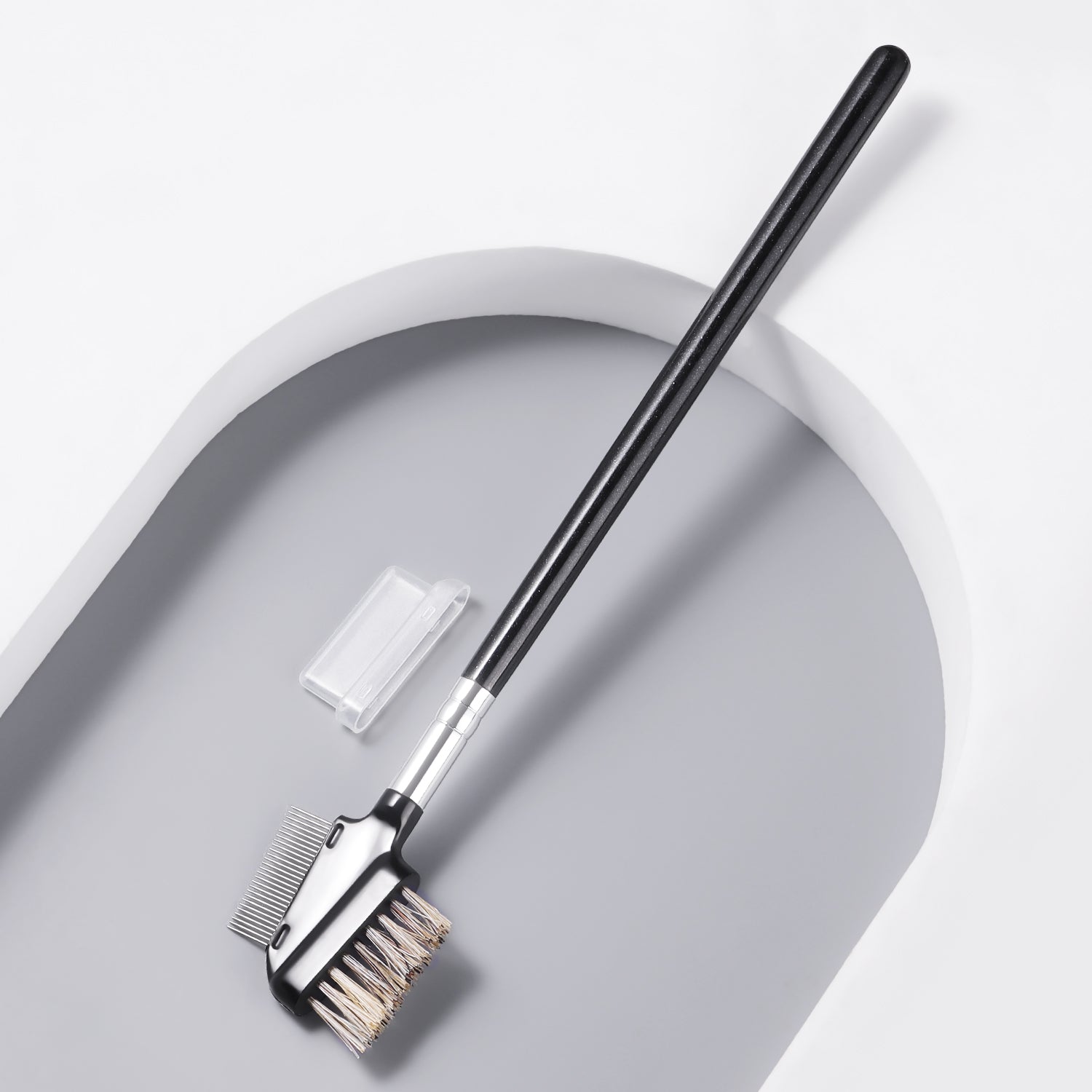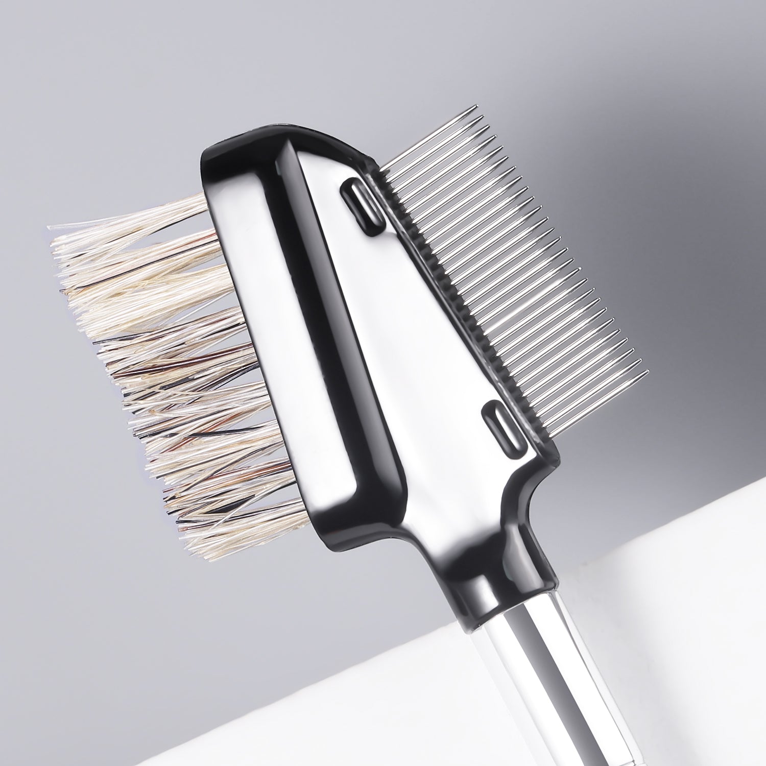 ✔️ DUALENDED DESIGN → One end of the steel wire comb, a head of angled brush, eyebrow eyelashes a brush for two