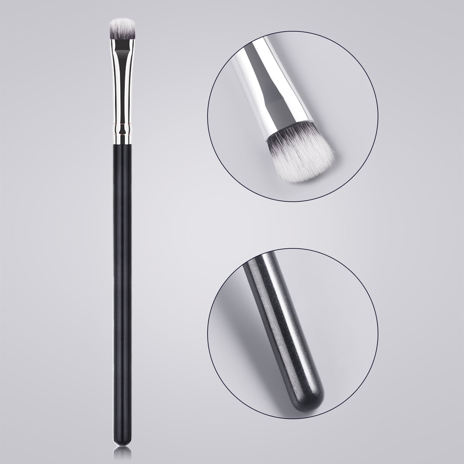 After dipping the brush into the product, gently shake off any excess powder. Apply makeup using a pressing and rolling technique (press and roll the foundation brush vertically, and blend the eyeshadow brush in a spiral motion). The aluminum-handled retractable brush uses a 45° angle to precisely contour the face, while the wooden-handled brush features a 32° anti-shake design for precise application.