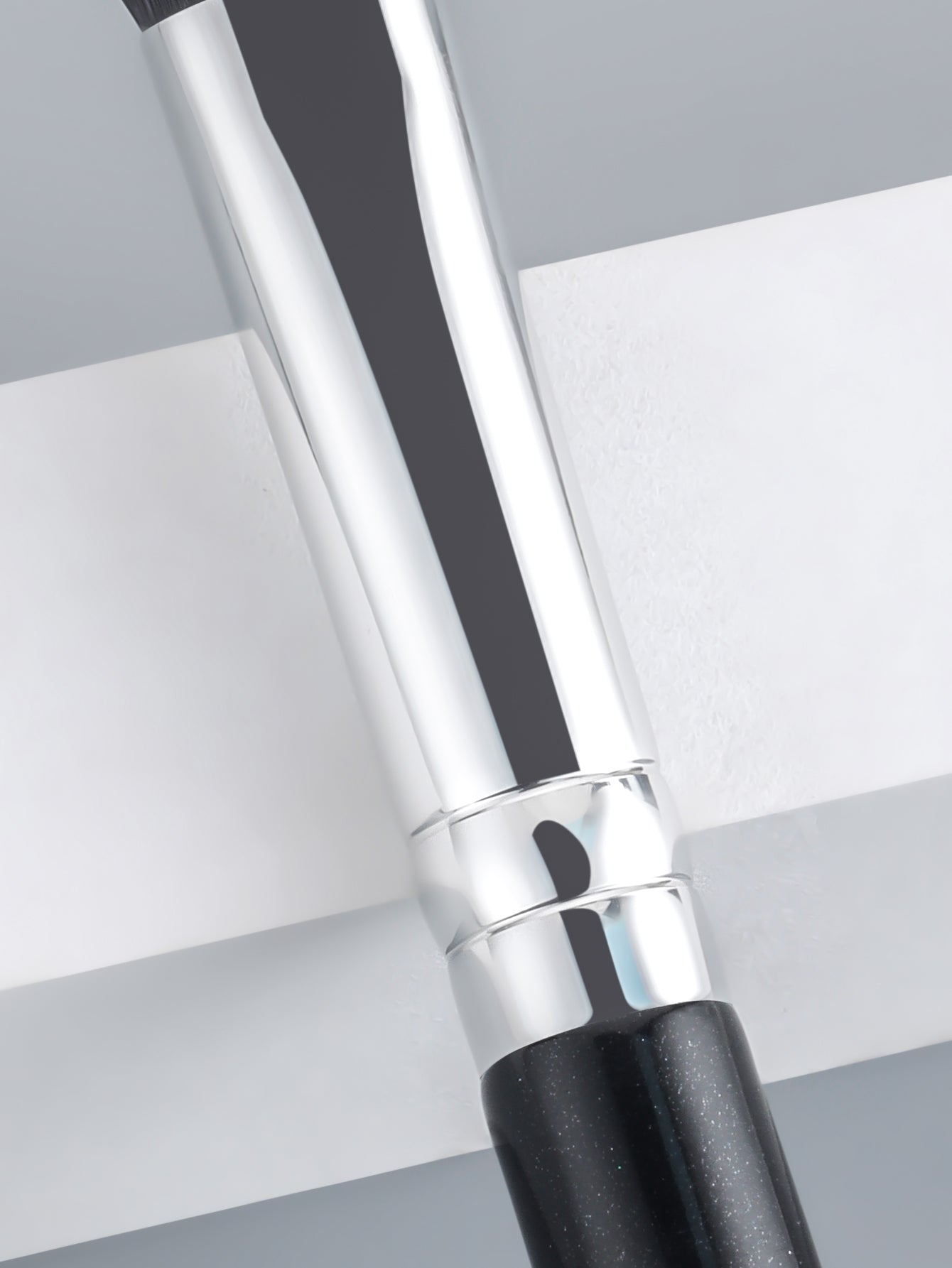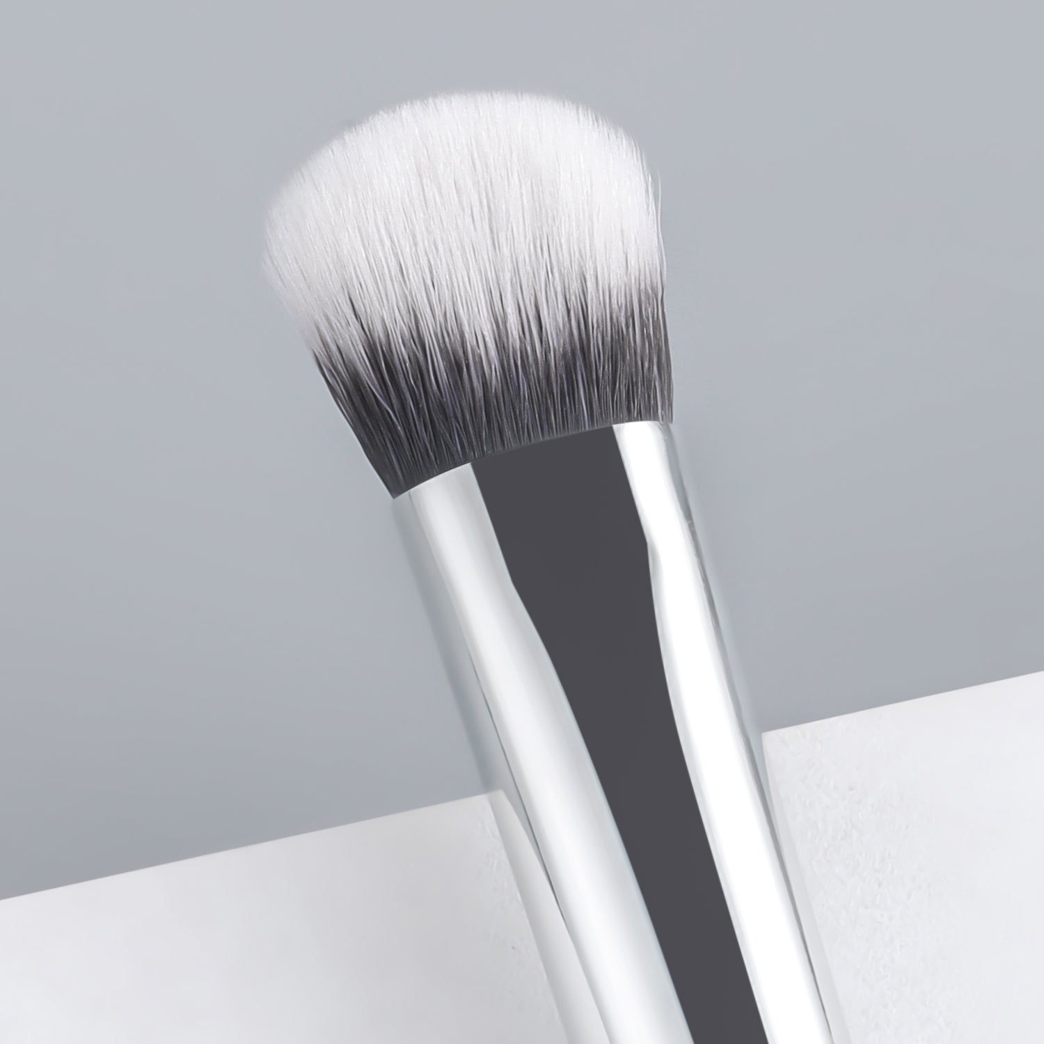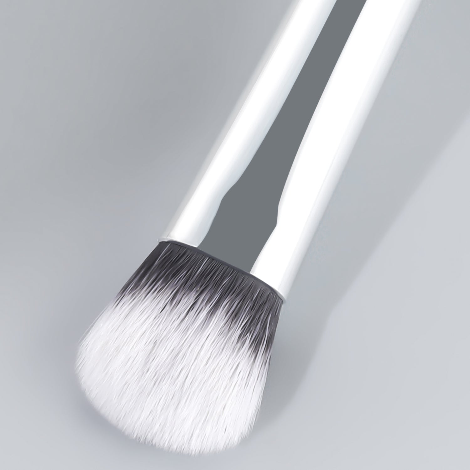 After dipping the brush into the product, gently shake off any excess powder. Apply makeup using a pressing and rolling technique (press and roll the foundation brush vertically, and blend the eyeshadow brush in a spiral motion). The aluminum-handled retractable brush uses a 45° angle to precisely contour the face, while the wooden-handled brush features a 32° anti-shake design for precise application.