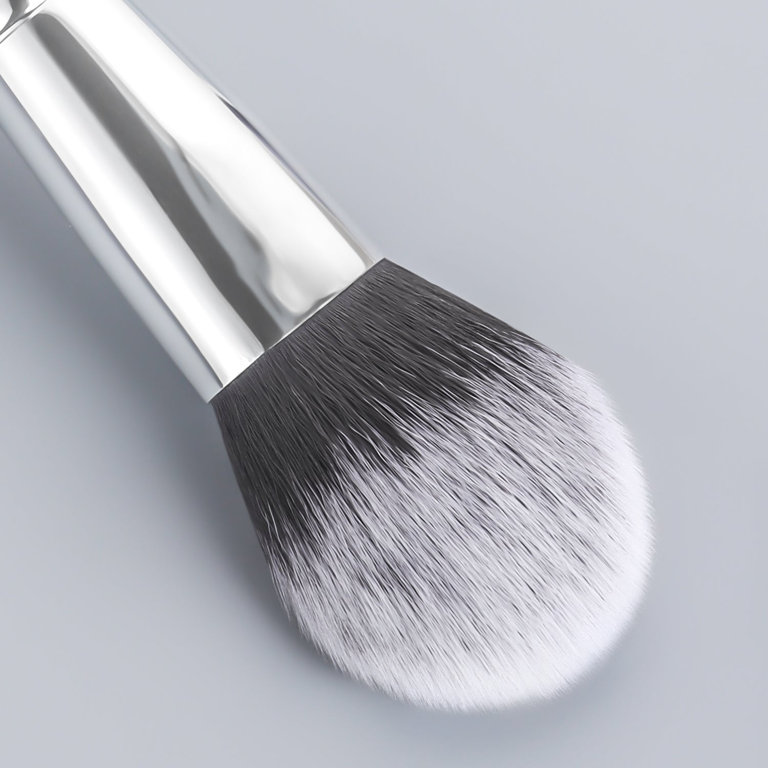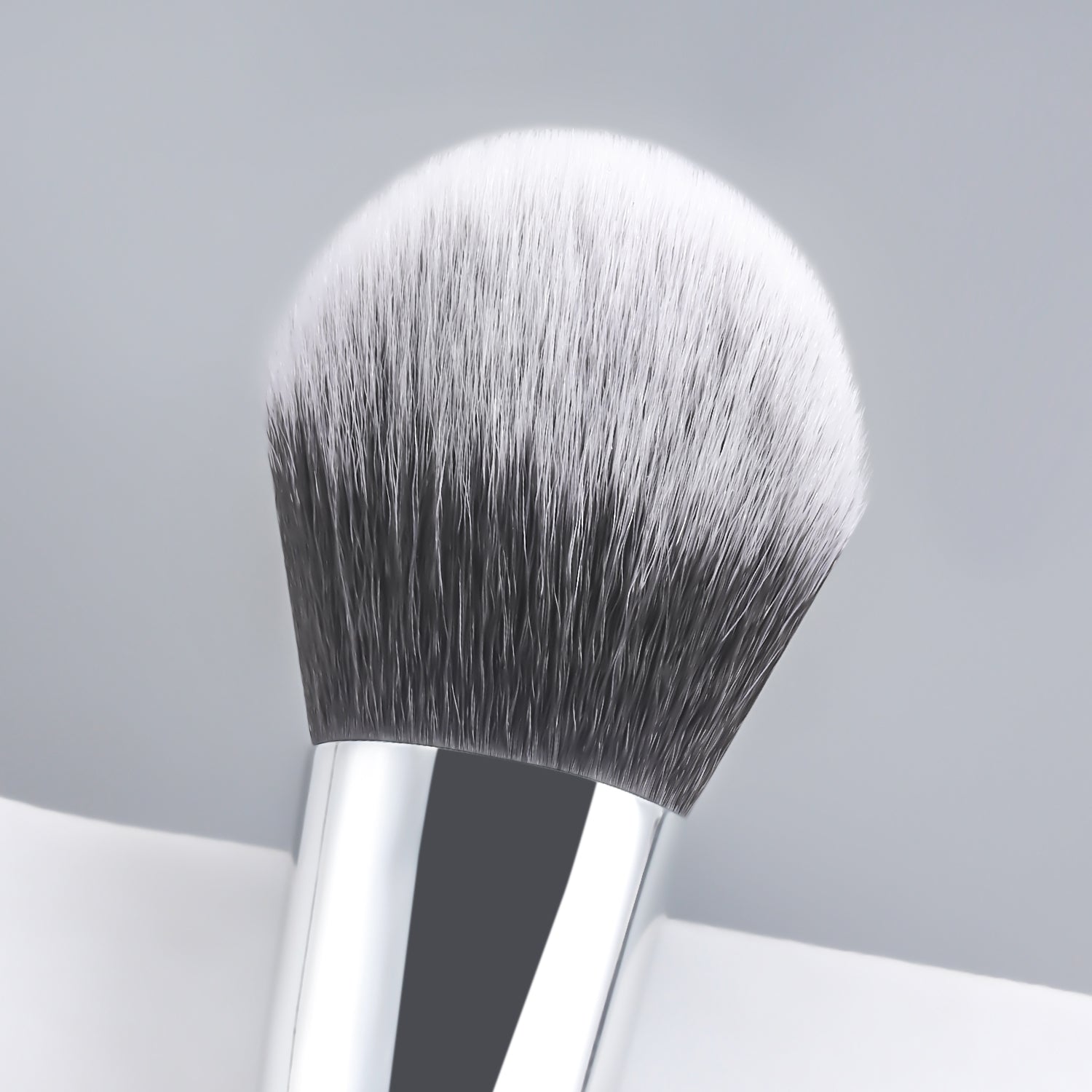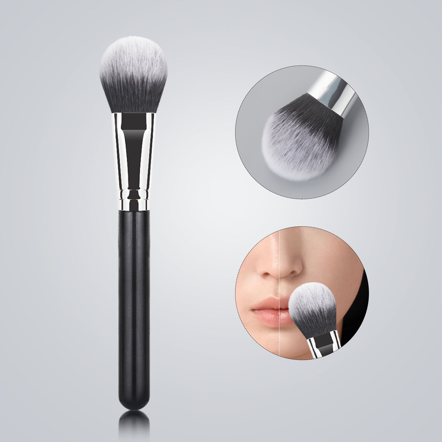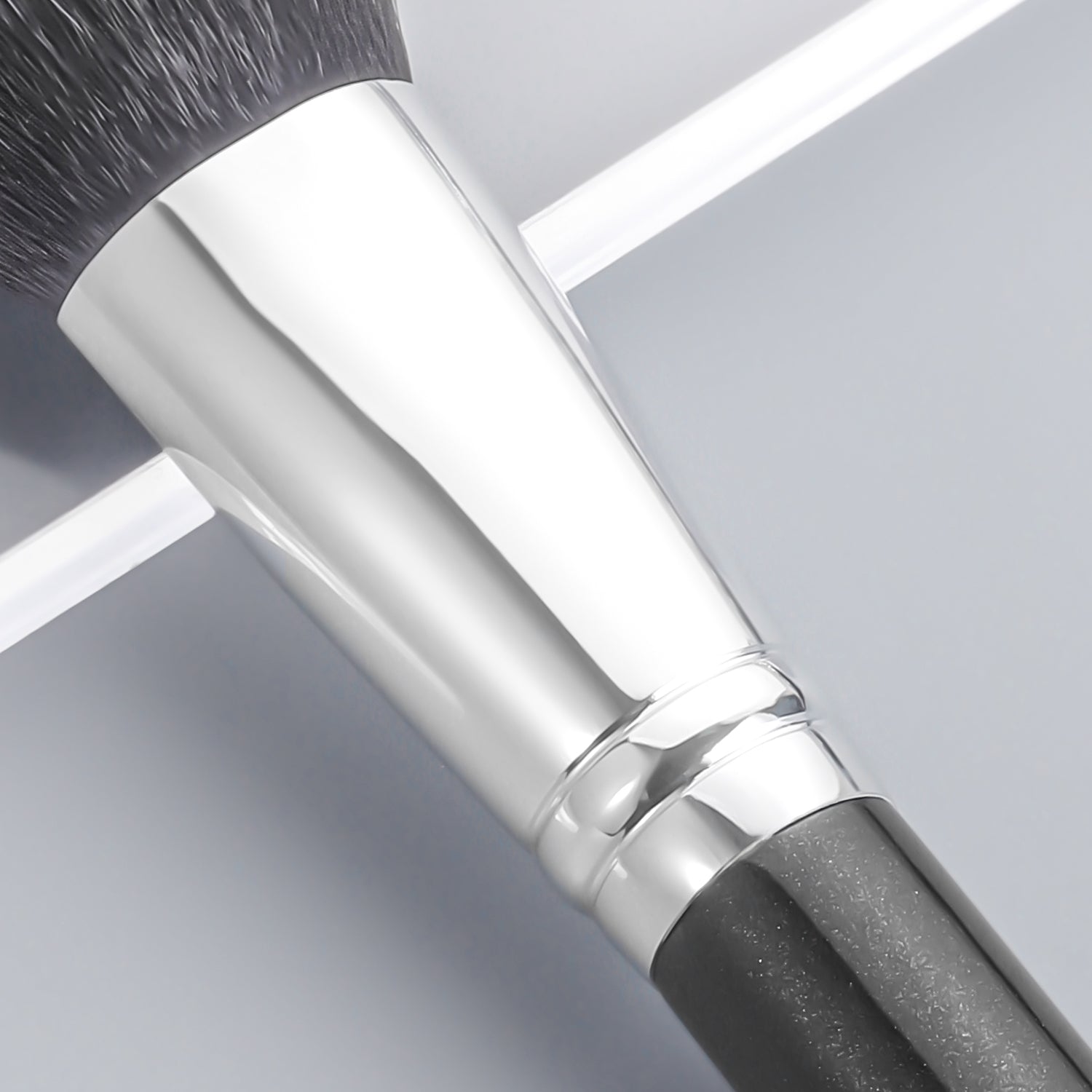 After dipping the brush into the product, gently shake off any excess powder. Apply makeup using a pressing and rolling technique (press and roll the foundation brush vertically, and blend the eyeshadow brush in a spiral motion). The aluminum-handled retractable brush uses a 45° angle to precisely contour the face, while the wooden-handled brush features a 32° anti-shake design for precise application.