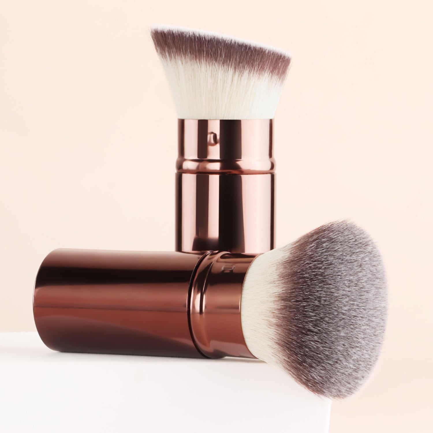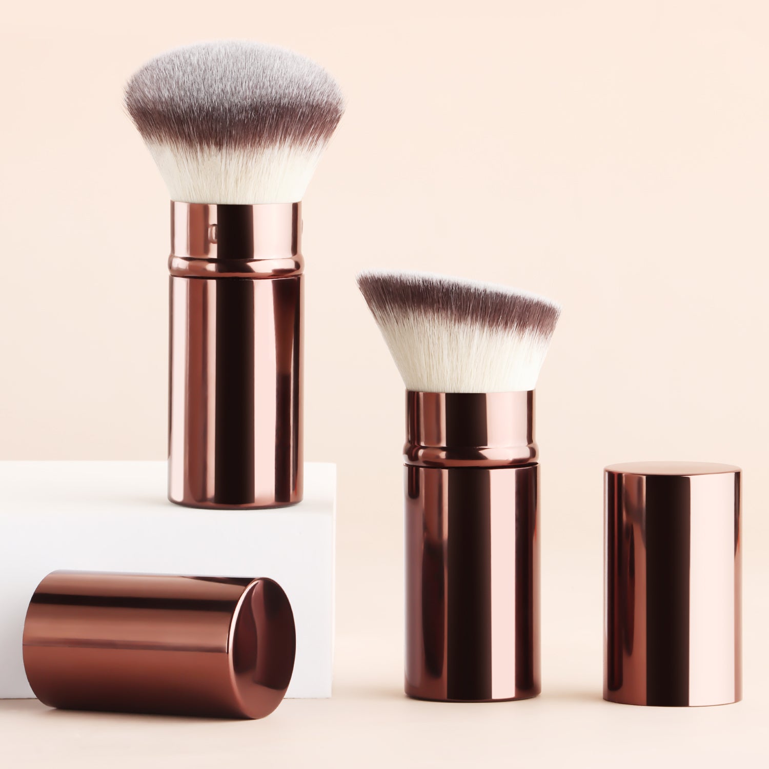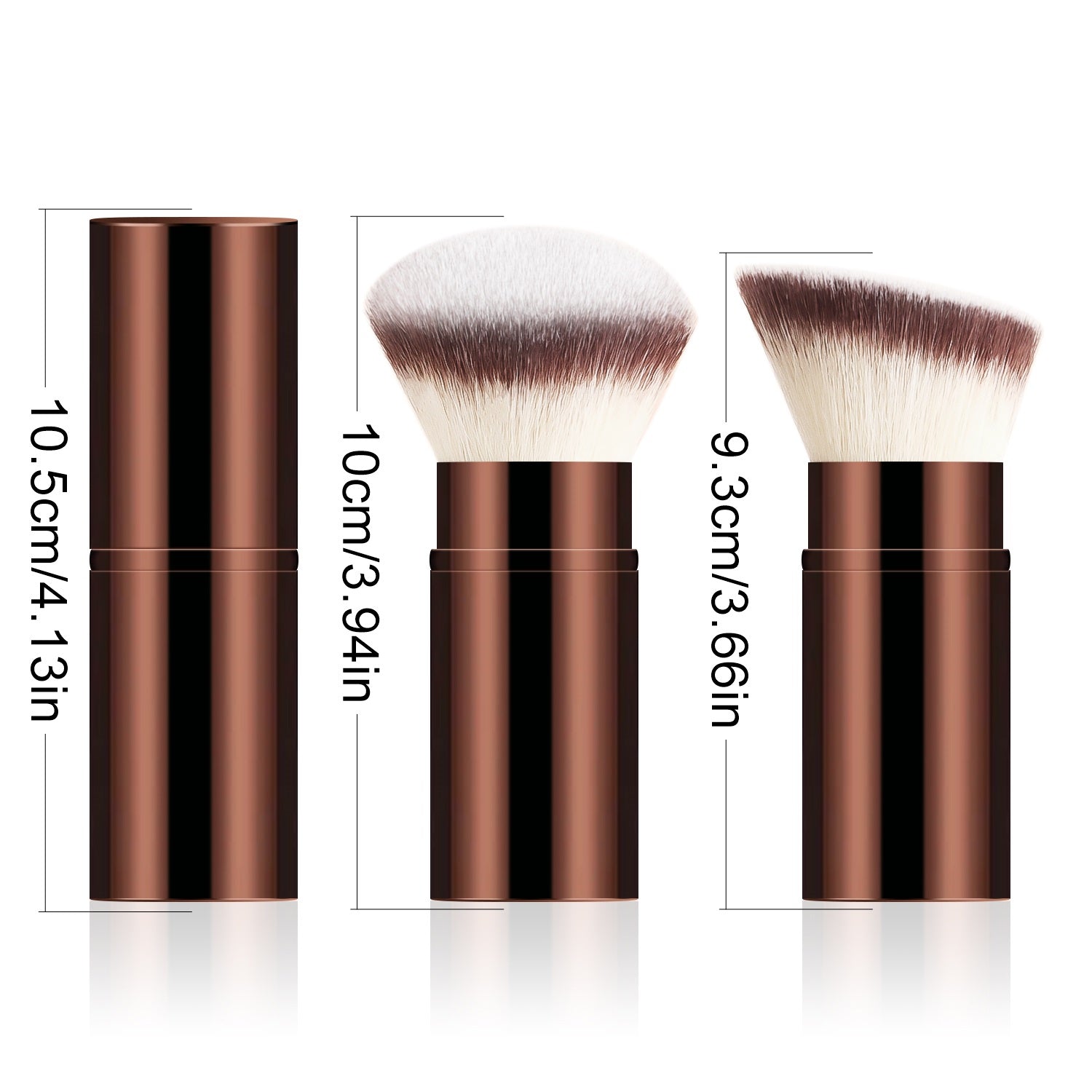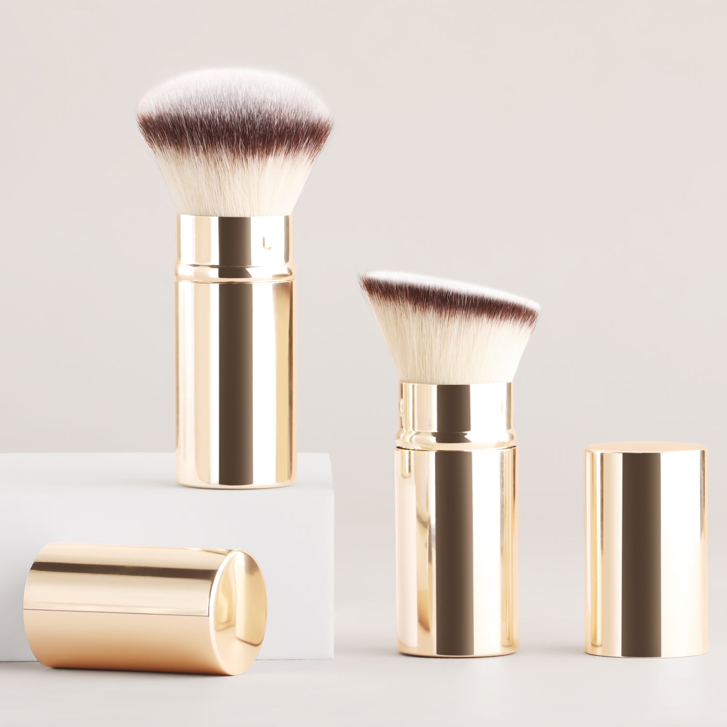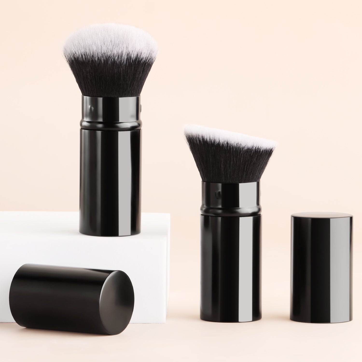 After dipping the brush into the product, gently shake off any excess powder. Apply makeup using a pressing and rolling technique (press and roll the foundation brush vertically, and blend the eyeshadow brush in a spiral motion). The aluminum-handled retractable brush uses a 45° angle to precisely contour the face, while the wooden-handled brush features a 32° anti-shake design for precise application.