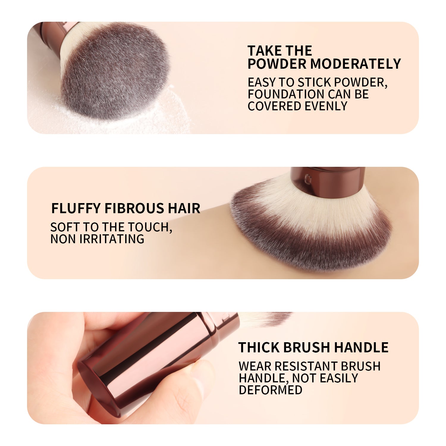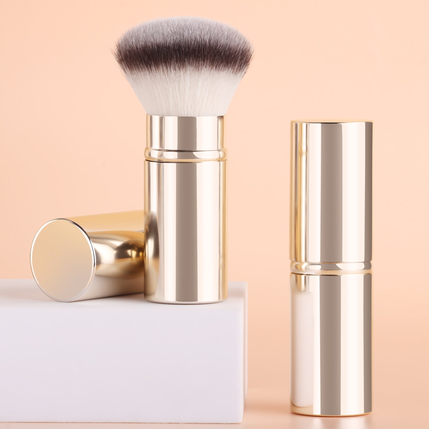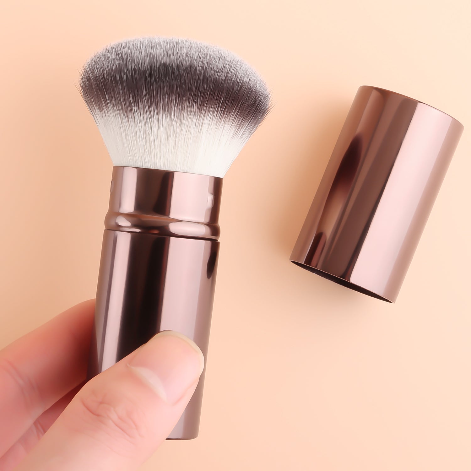 After dipping the brush into the product, gently shake off any excess powder. Apply makeup using a pressing and rolling technique (press and roll the foundation brush vertically, and blend the eyeshadow brush in a spiral motion). The aluminum-handled retractable brush uses a 45° angle to precisely contour the face, while the wooden-handled brush features a 32° anti-shake design for precise application.