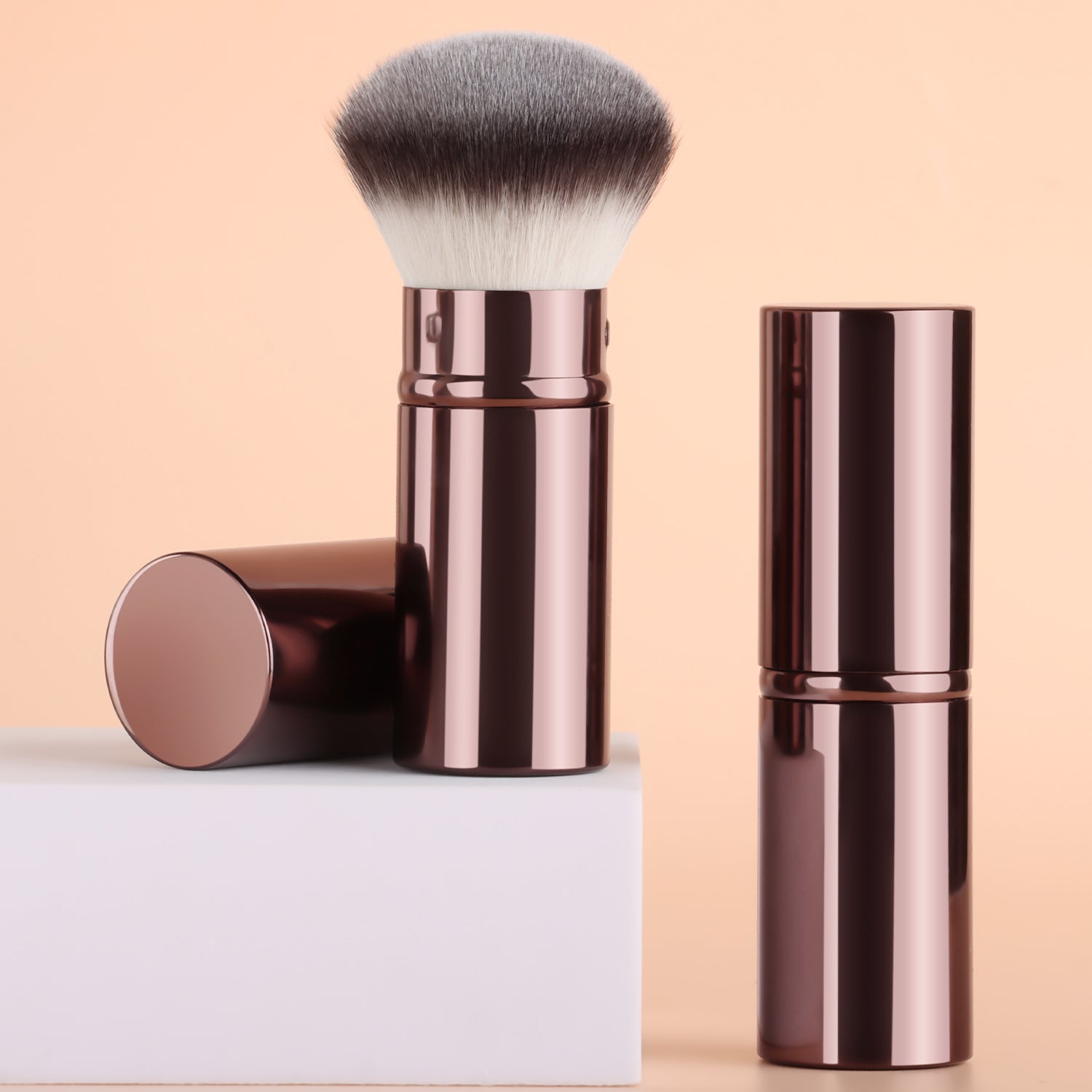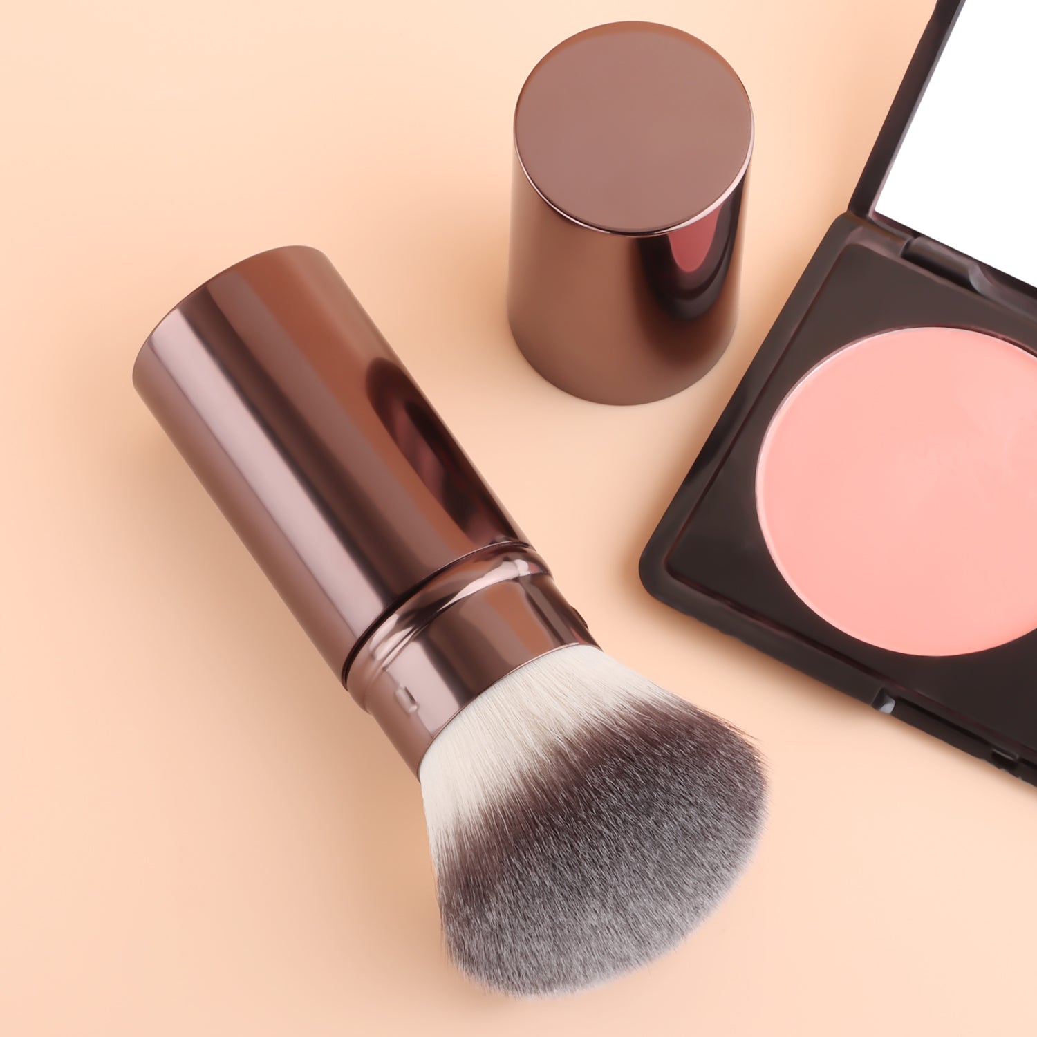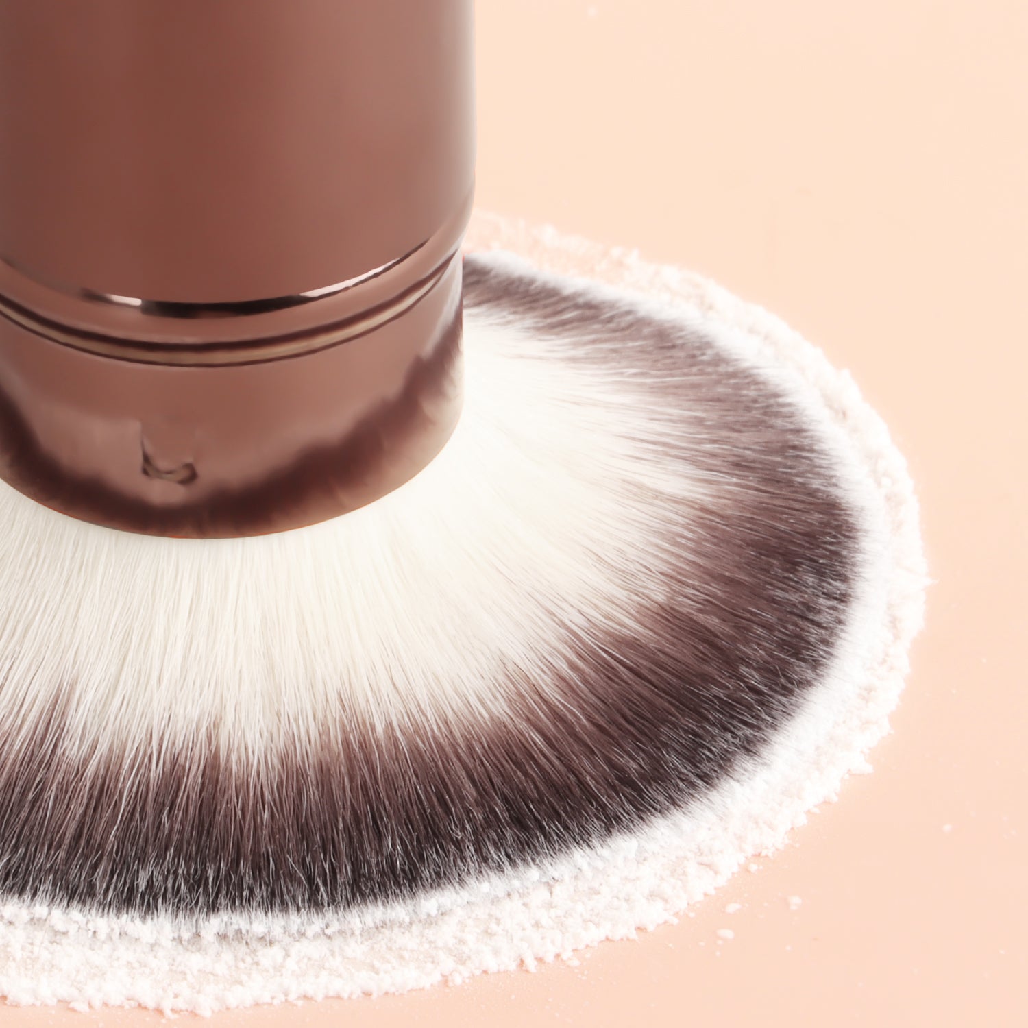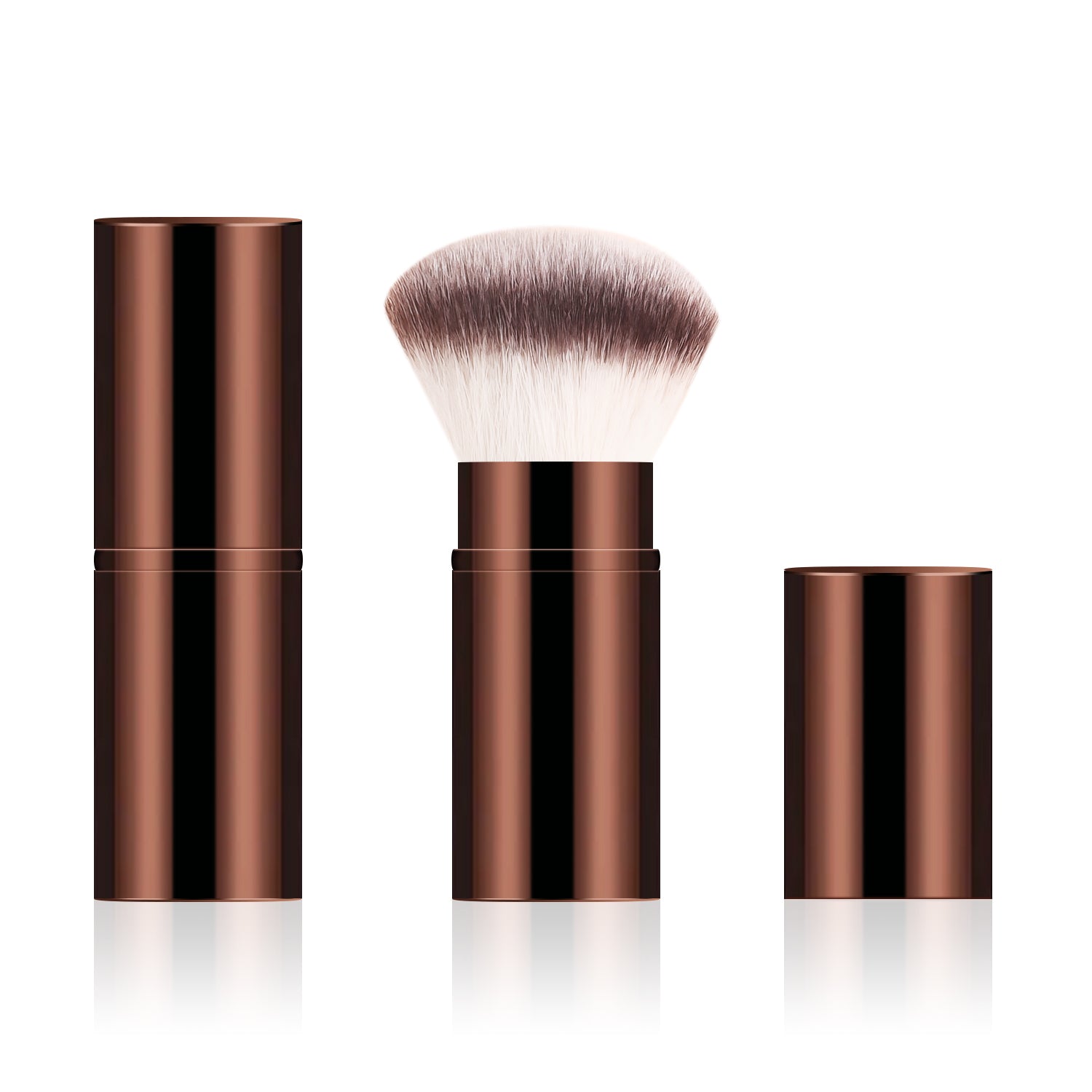 After dipping the brush into the product, gently shake off any excess powder. Apply makeup using a pressing and rolling technique (press and roll the foundation brush vertically, and blend the eyeshadow brush in a spiral motion). The aluminum-handled retractable brush uses a 45° angle to precisely contour the face, while the wooden-handled brush features a 32° anti-shake design for precise application.