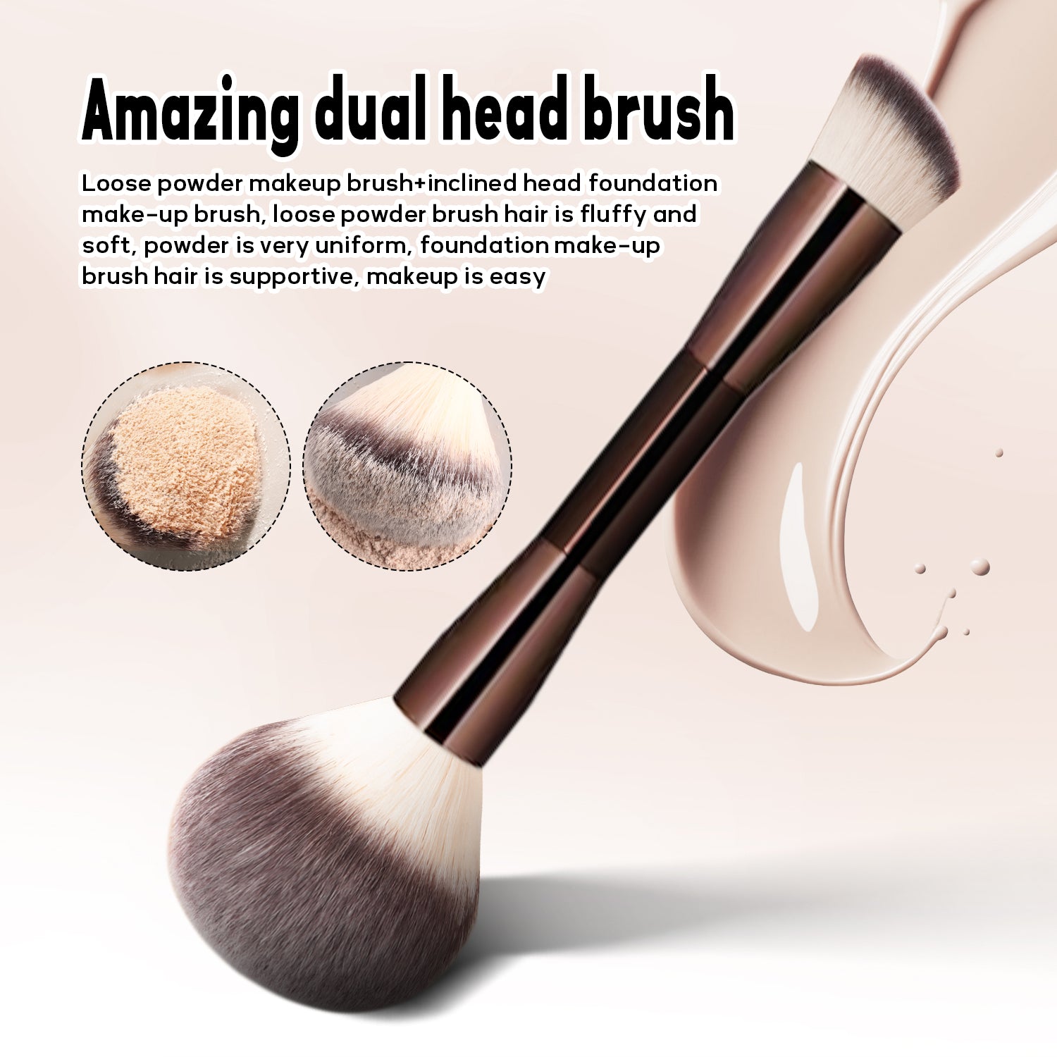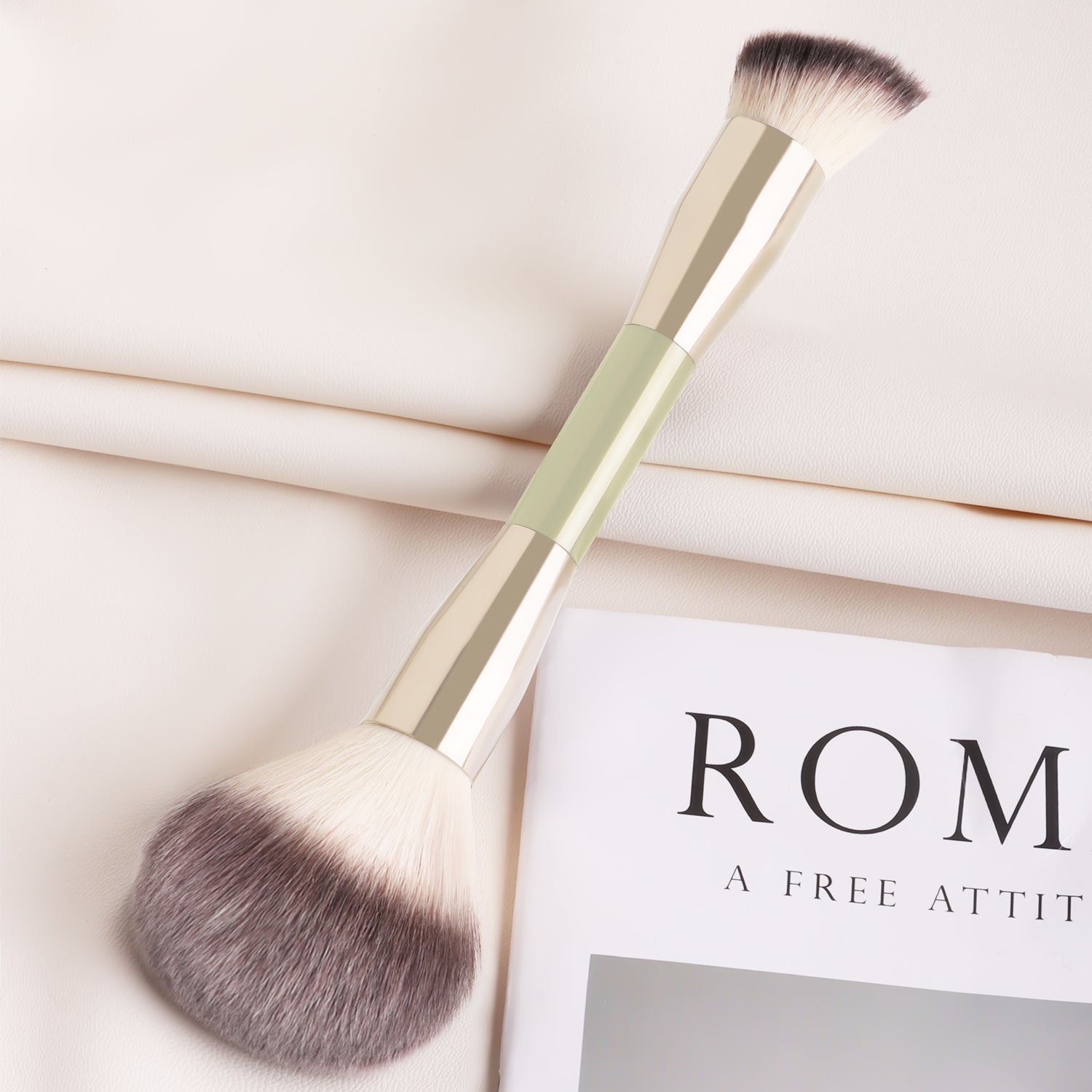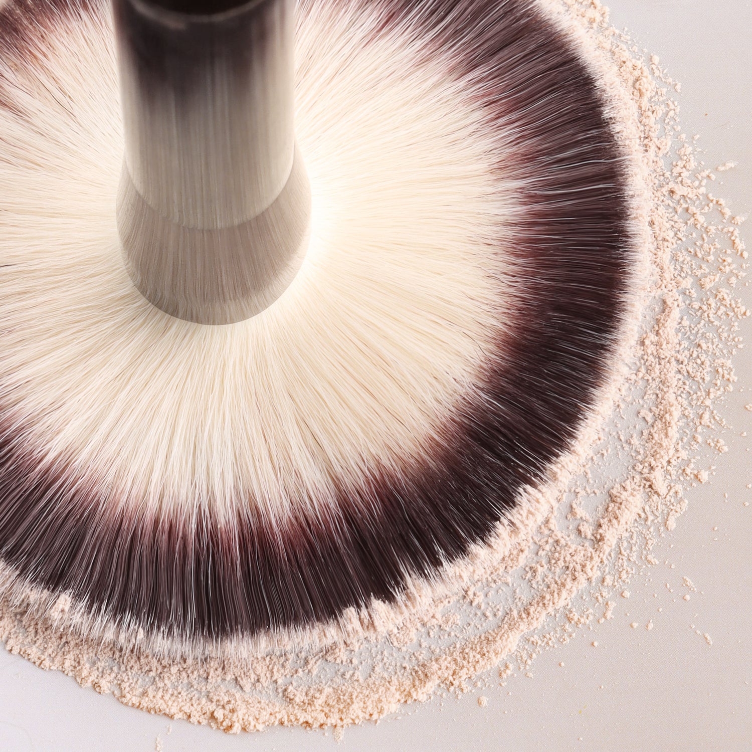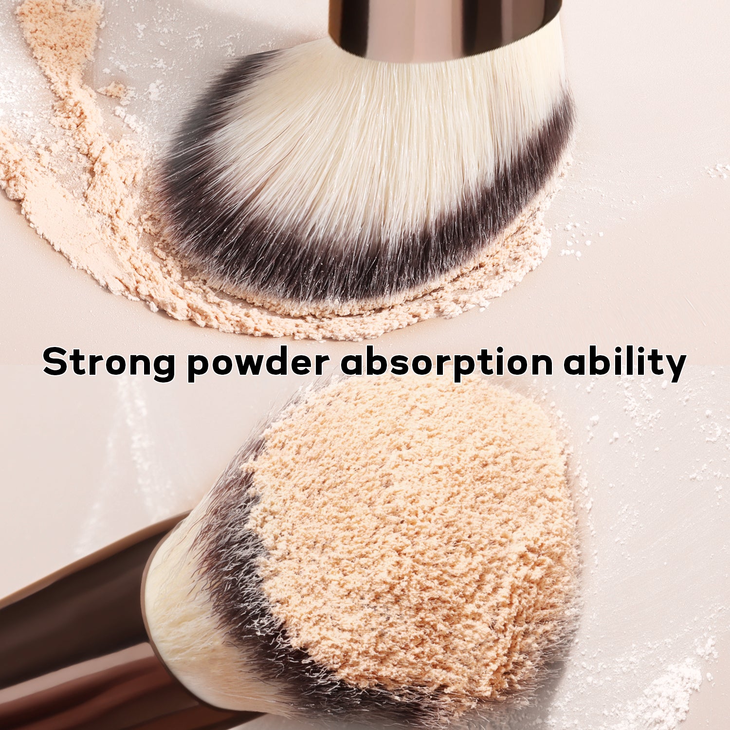 After dipping the brush into the product, gently shake off any excess powder. Apply makeup using a pressing and rolling technique (press and roll the foundation brush vertically, and blend the eyeshadow brush in a spiral motion). The aluminum-handled retractable brush uses a 45° angle to precisely contour the face, while the wooden-handled brush features a 32° anti-shake design for precise application.