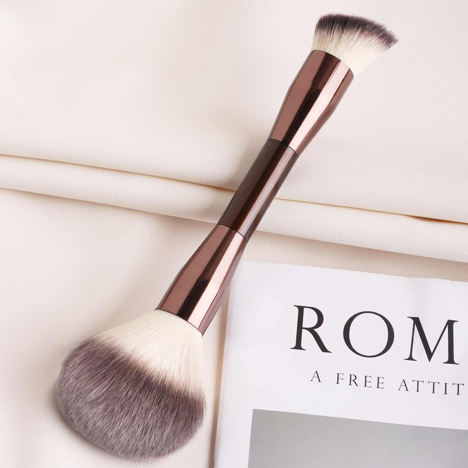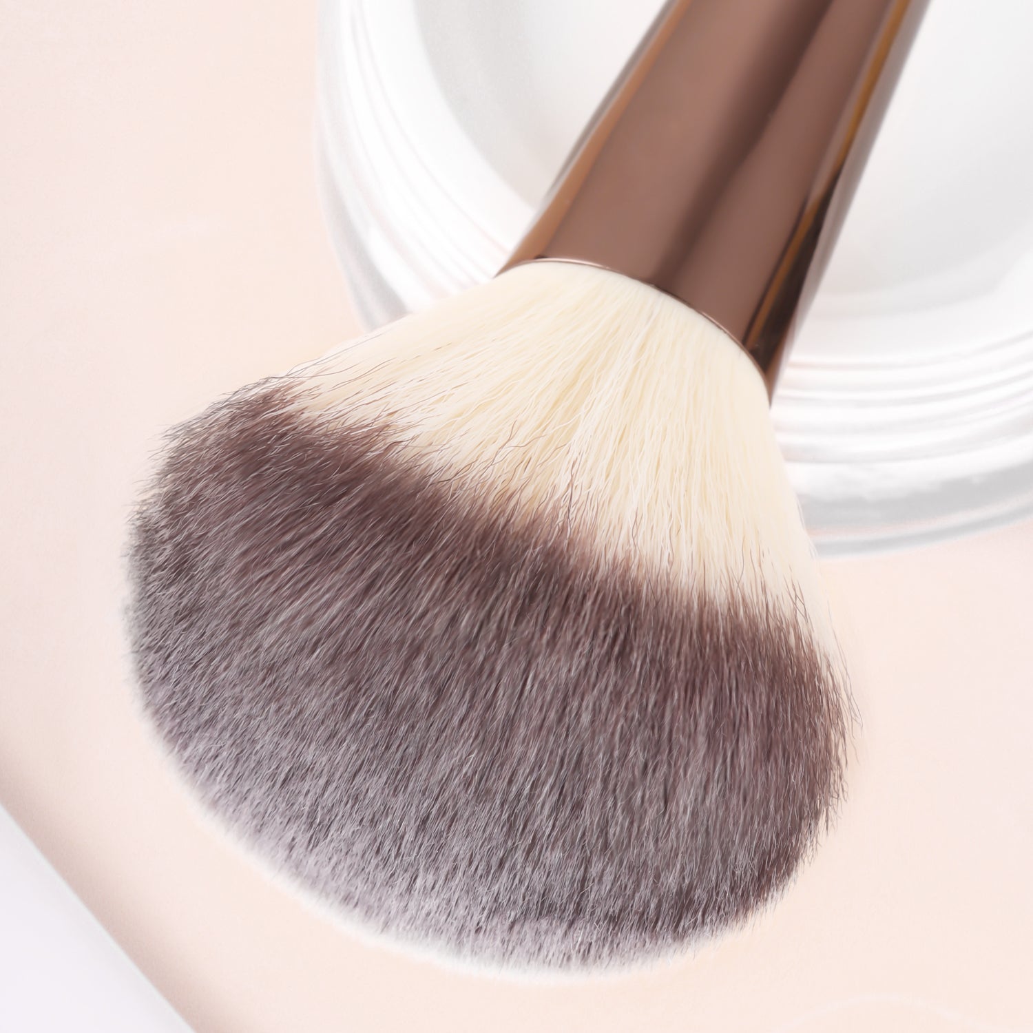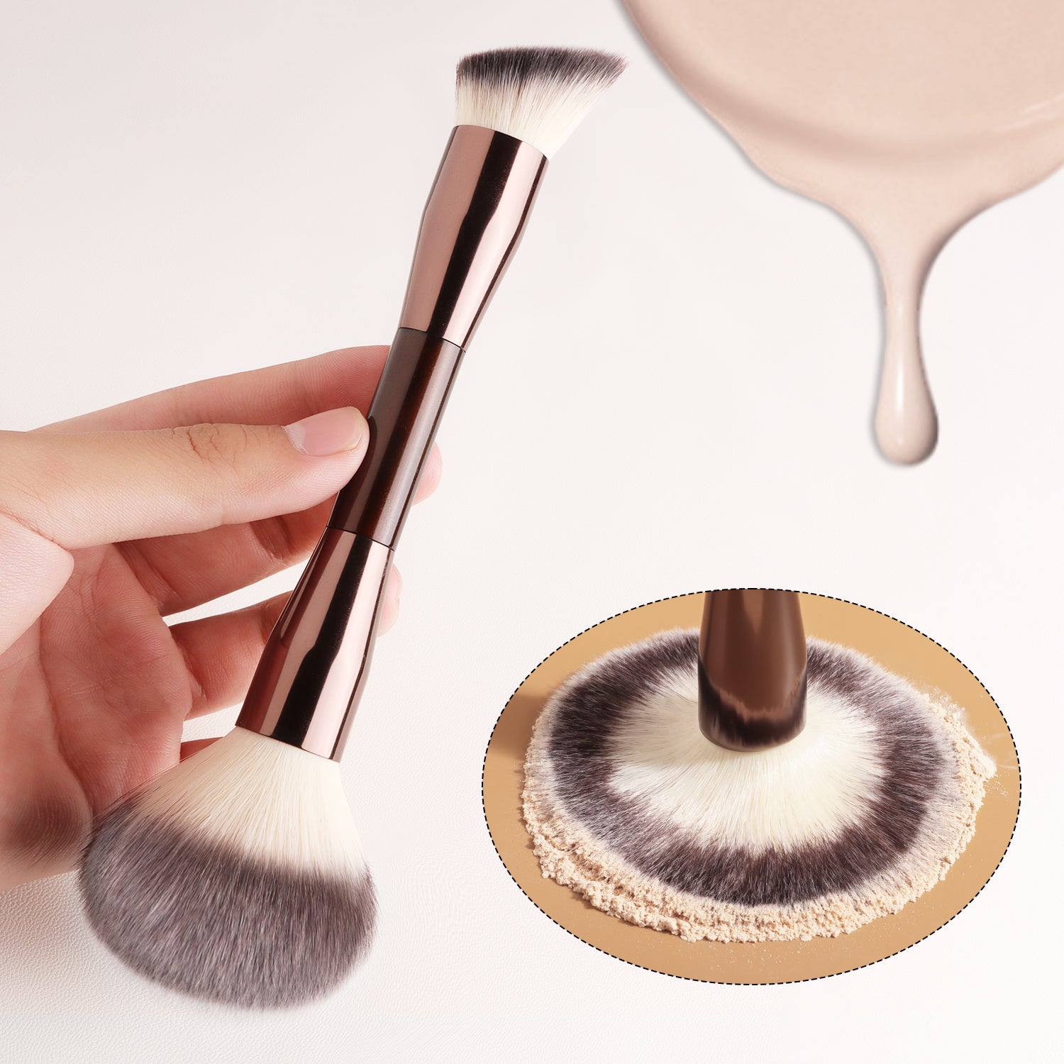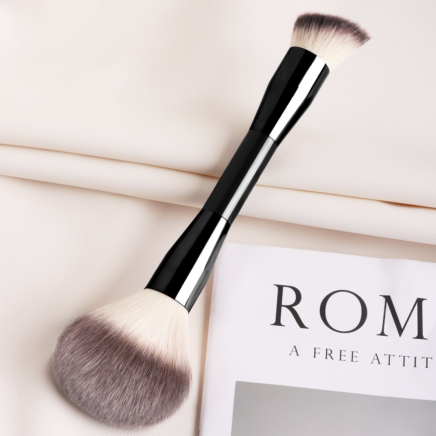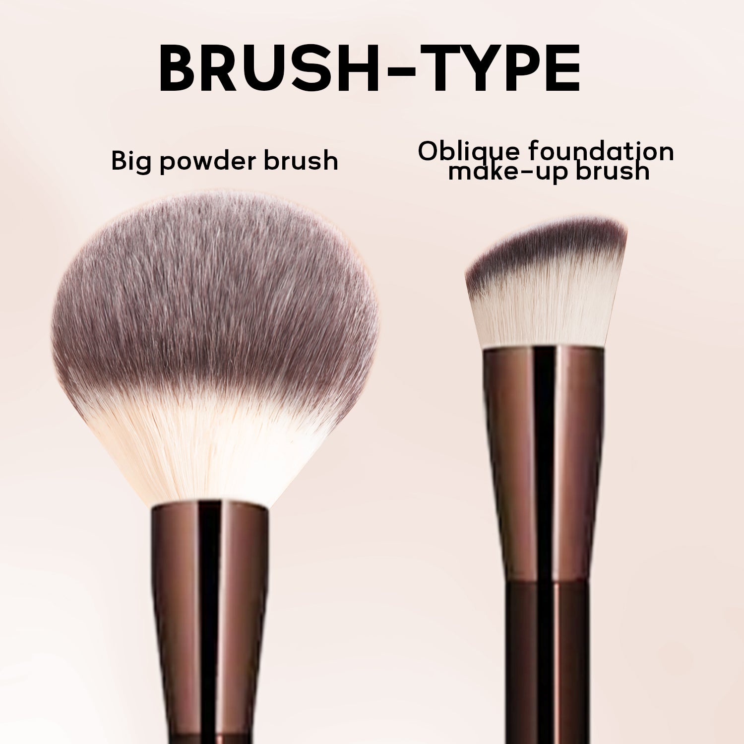 After dipping the brush into the product, gently shake off any excess powder. Apply makeup using a pressing and rolling technique (press and roll the foundation brush vertically, and blend the eyeshadow brush in a spiral motion). The aluminum-handled retractable brush uses a 45° angle to precisely contour the face, while the wooden-handled brush features a 32° anti-shake design for precise application.
