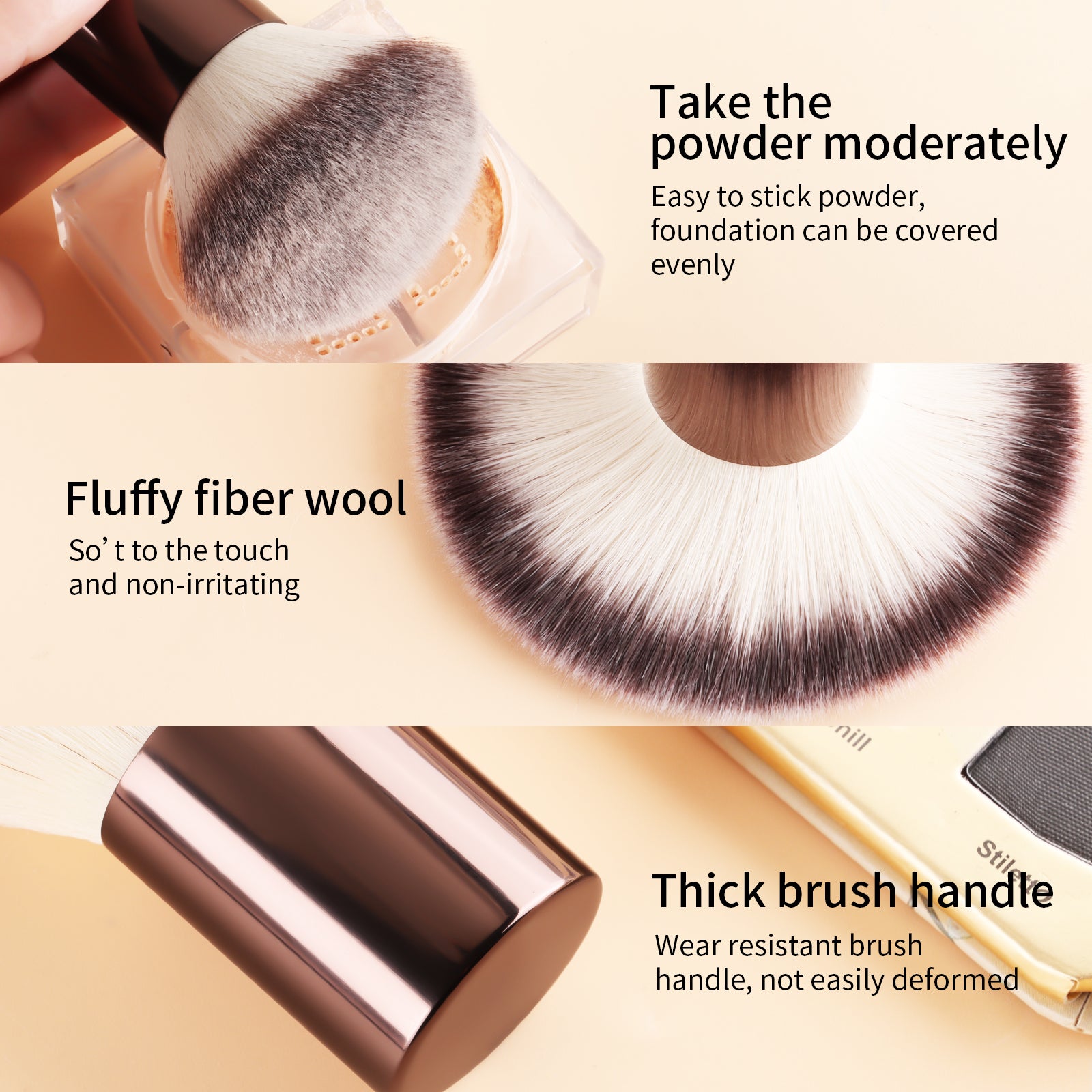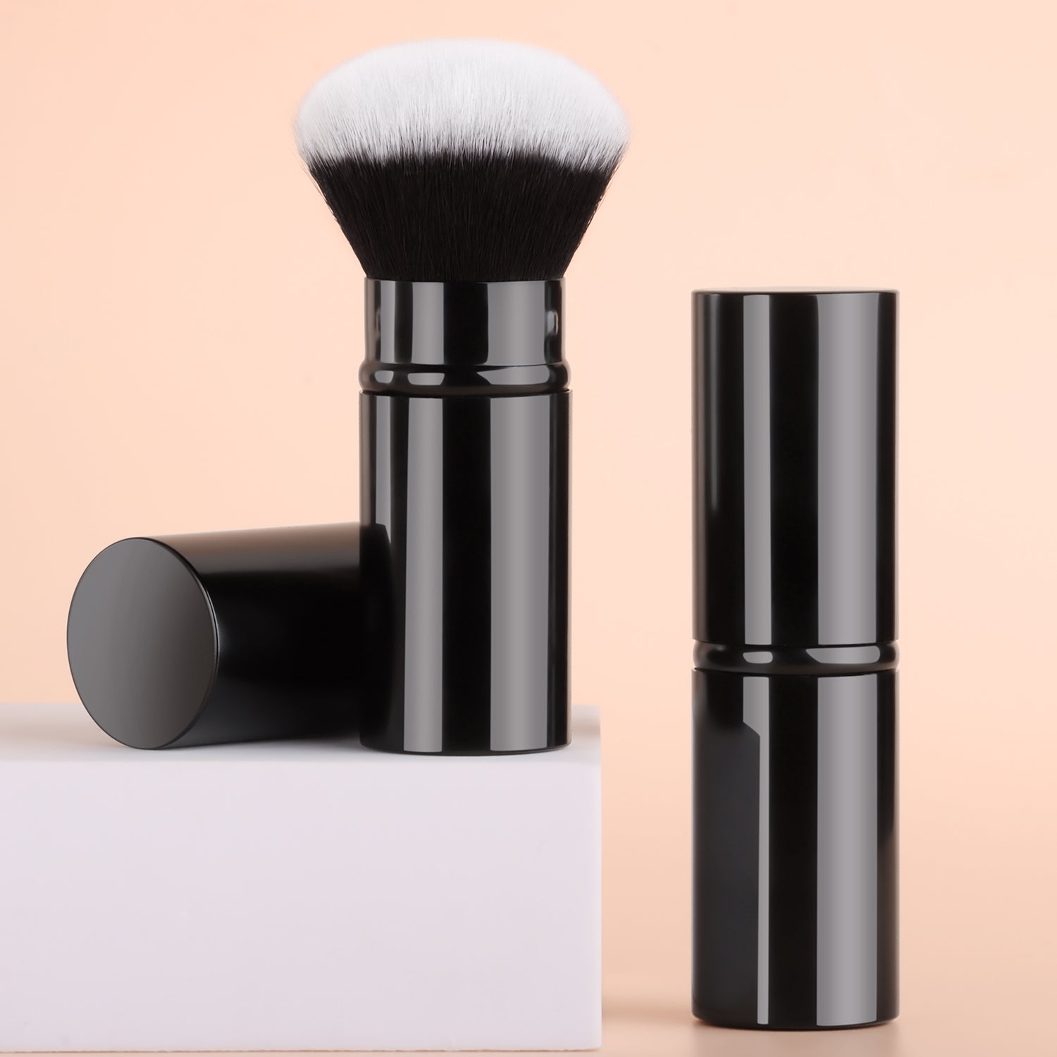 After dipping the brush into the product, gently shake off any excess powder. Apply makeup using a pressing and rolling technique (press and roll the foundation brush vertically, and blend the eyeshadow brush in a spiral motion). The aluminum-handled retractable brush uses a 45° angle to precisely contour the face, while the wooden-handled brush features a 32° anti-shake design for precise application.