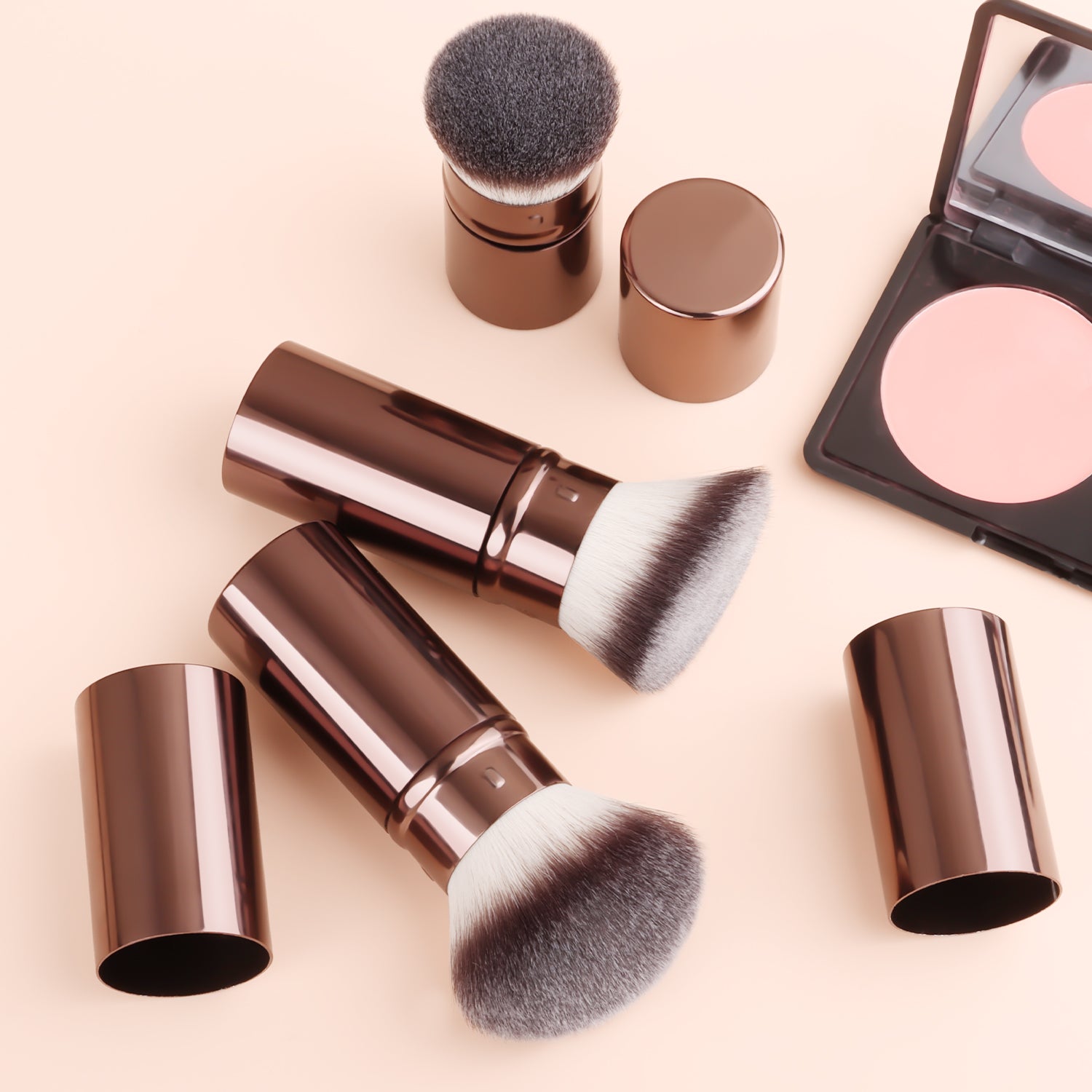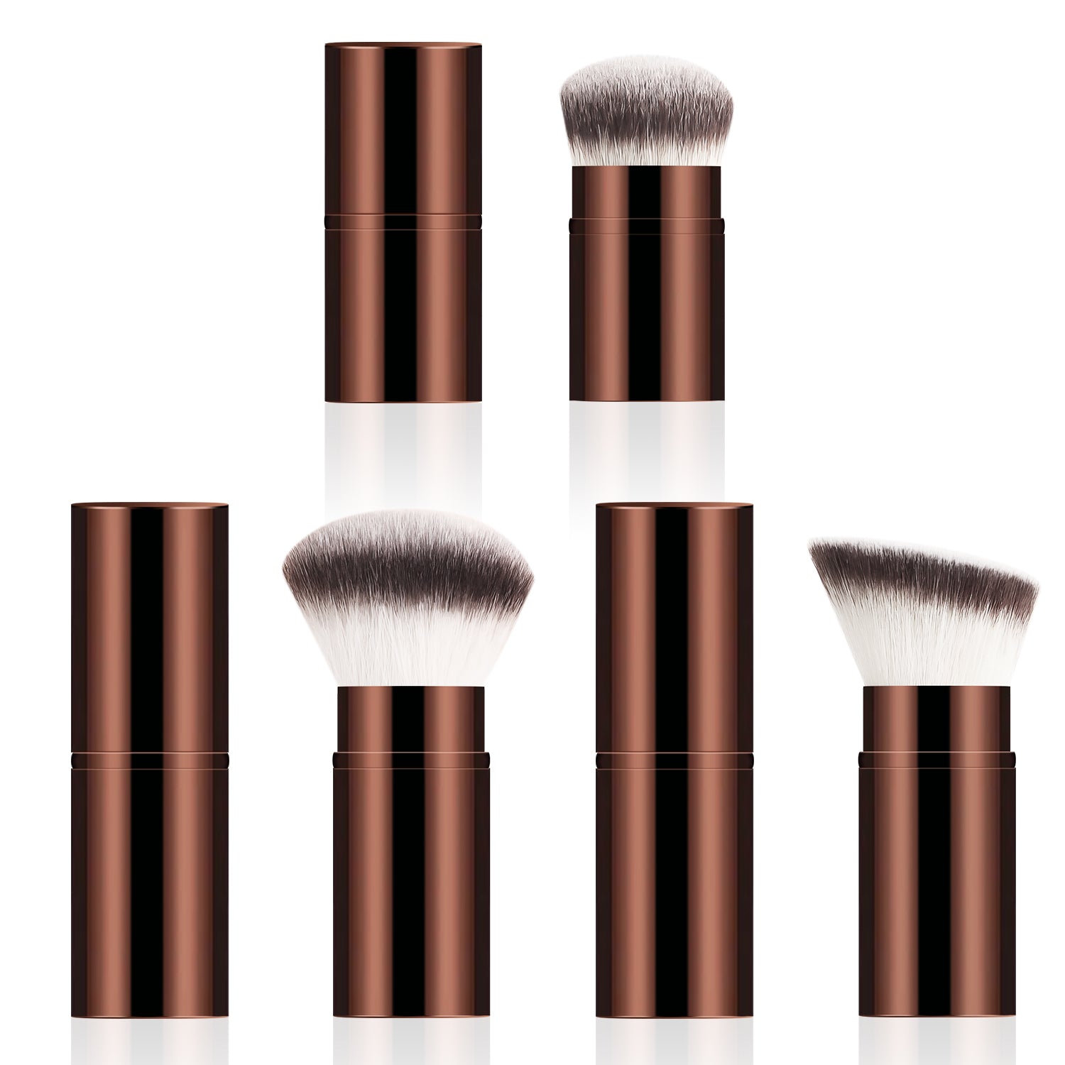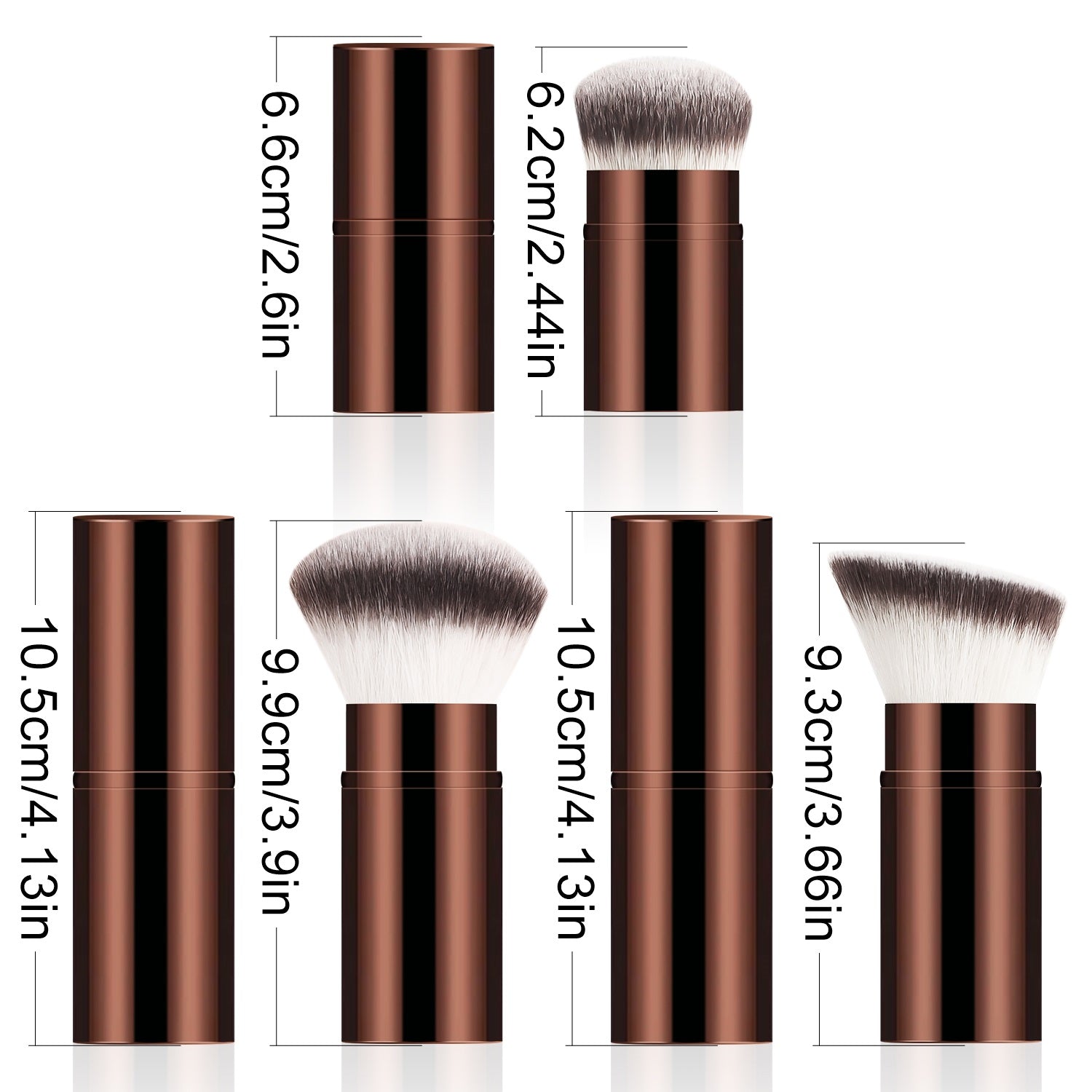 After dipping the brush into the product, gently shake off any excess powder. Apply makeup using a pressing and rolling technique (press and roll the foundation brush vertically, and blend the eyeshadow brush in a spiral motion). The aluminum-handled retractable brush uses a 45° angle to precisely contour the face, while the wooden-handled brush features a 32° anti-shake design for precise application.