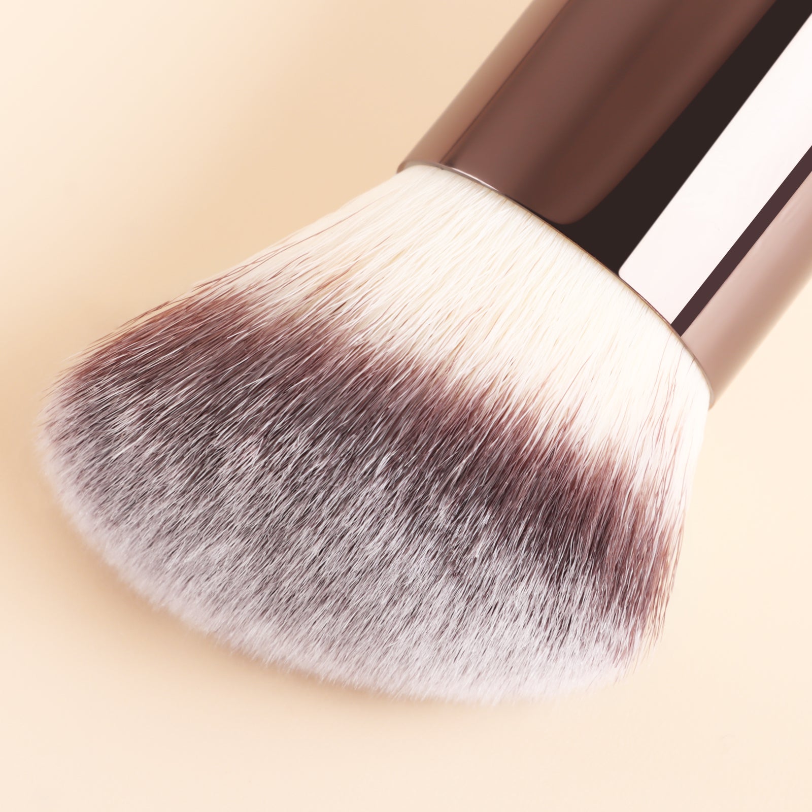 After dipping the brush into the product, gently shake off any excess powder. Apply makeup using a pressing and rolling technique (press and roll the foundation brush vertically, and blend the eyeshadow brush in a spiral motion). The aluminum-handled retractable brush uses a 45° angle to precisely contour the face, while the wooden-handled brush features a 32° anti-shake design for precise application.