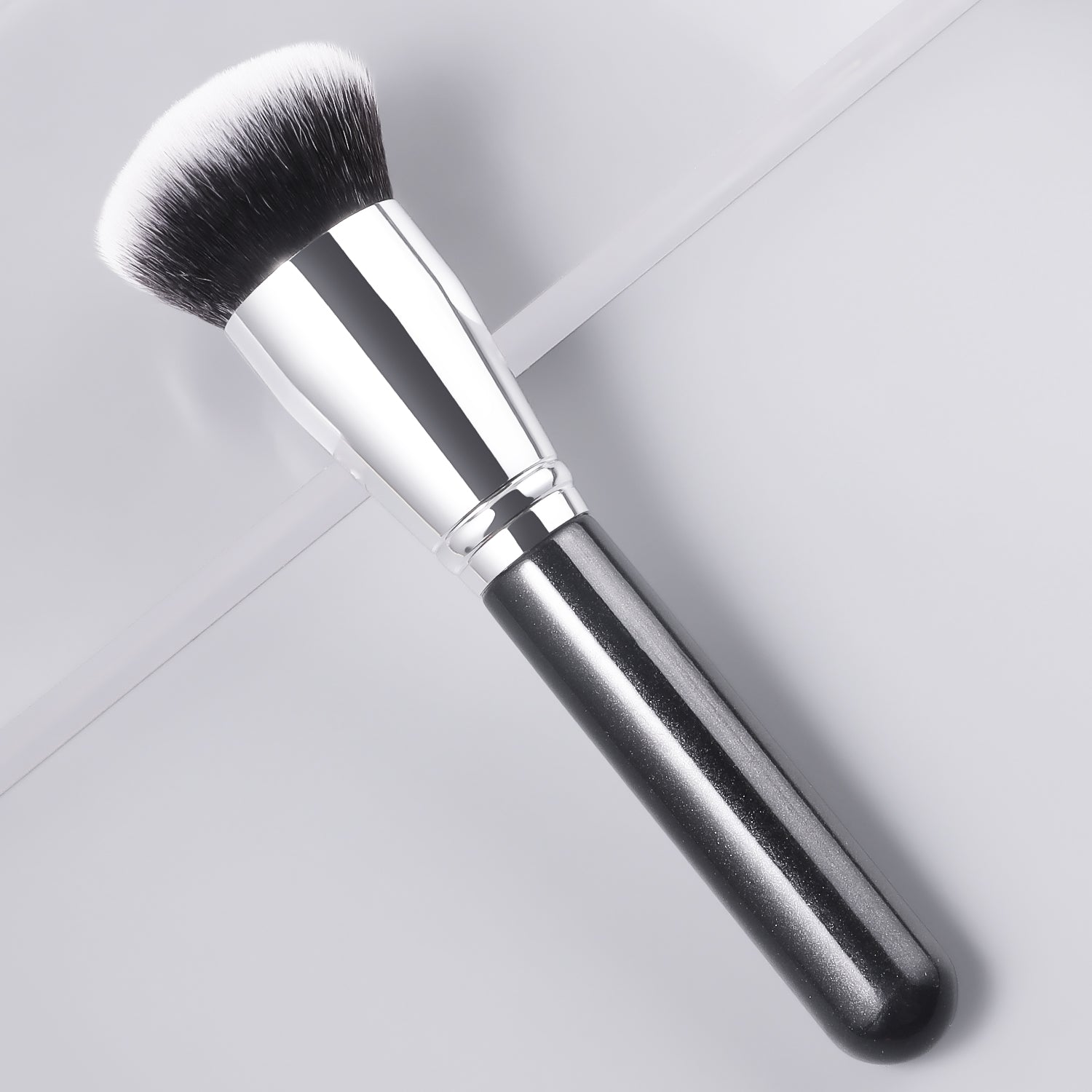 Dense-yet-soft bristles blot oil instantly, blur pores/lines for a filtered-skin finish.