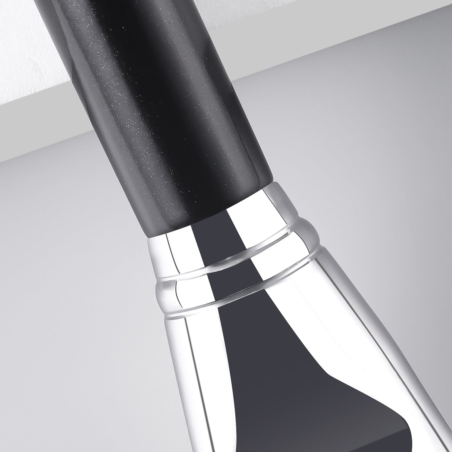 After dipping the brush into the product, gently shake off any excess powder. Apply makeup using a pressing and rolling technique (press and roll the foundation brush vertically, and blend the eyeshadow brush in a spiral motion). The aluminum-handled retractable brush uses a 45° angle to precisely contour the face, while the wooden-handled brush features a 32° anti-shake design for precise application.