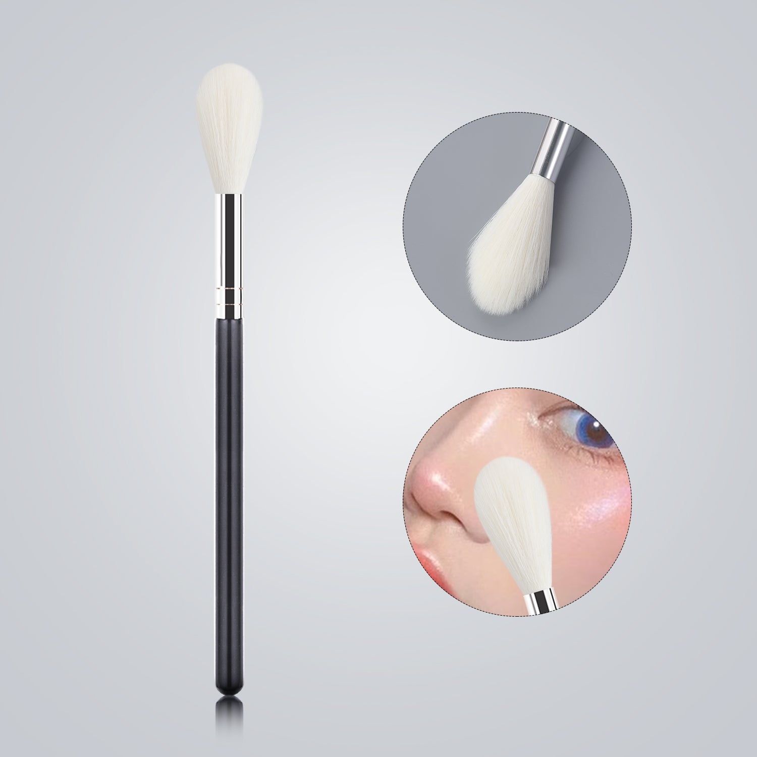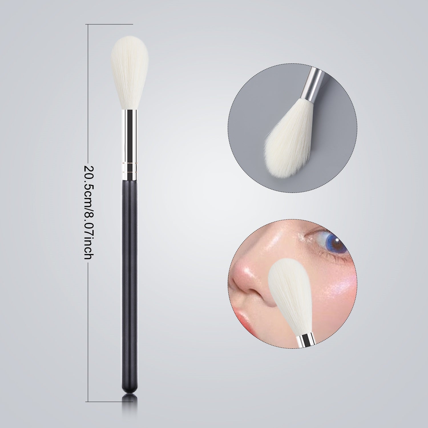 Our tapered 6cm bristles deposit highlighter like a spotlight—cheekbones, brow bones & Cupid's bow glow on contact.
