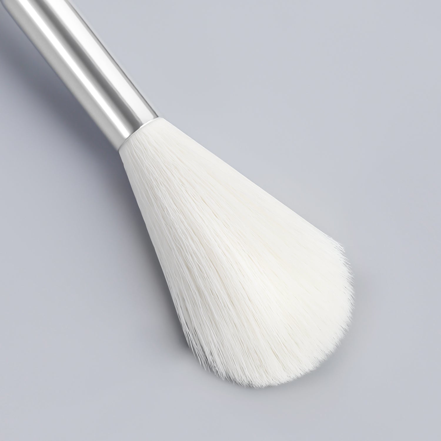 After dipping the brush into the product, gently shake off any excess powder. Apply makeup using a pressing and rolling technique (press and roll the foundation brush vertically, and blend the eyeshadow brush in a spiral motion). The aluminum-handled retractable brush uses a 45° angle to precisely contour the face, while the wooden-handled brush features a 32° anti-shake design for precise application.
