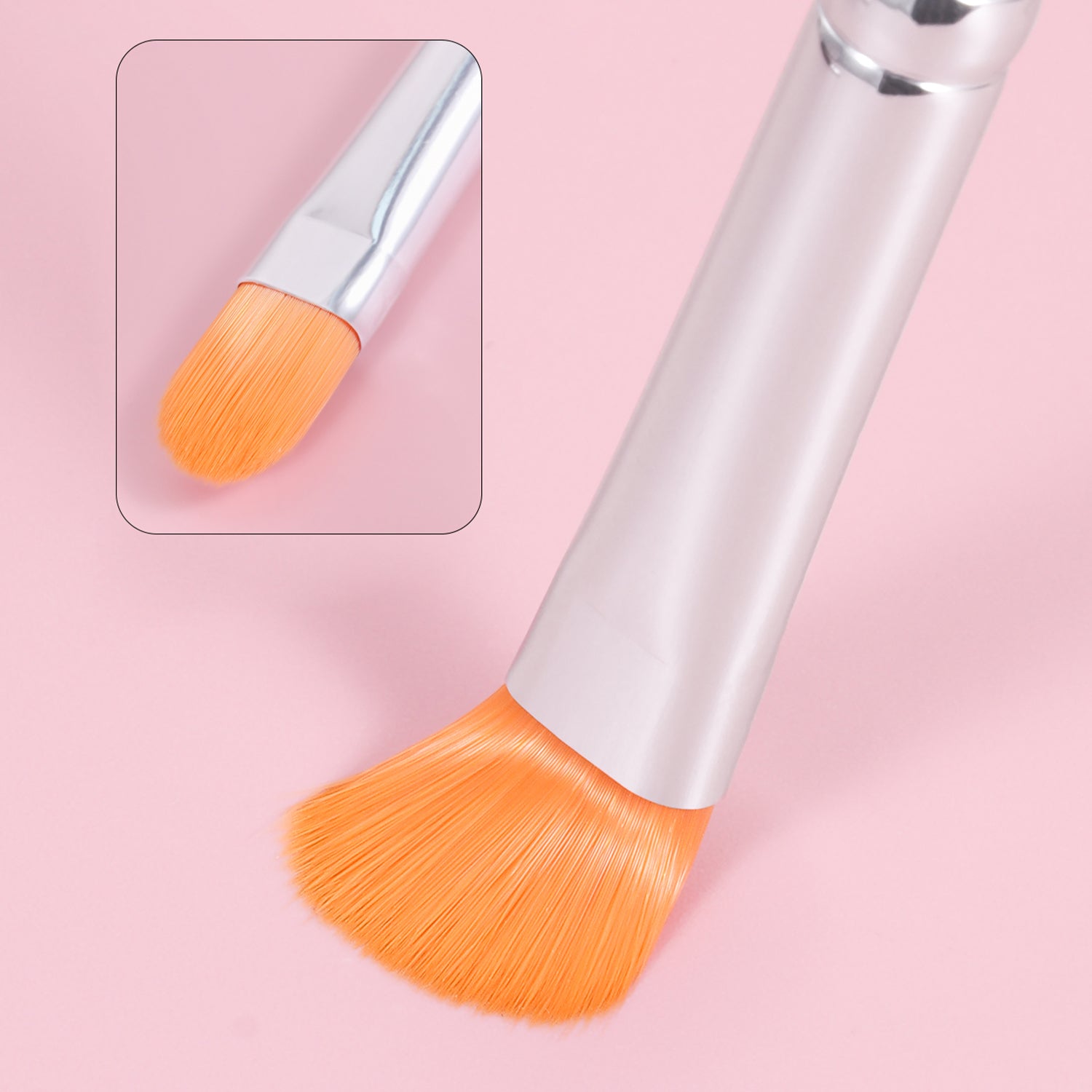 After dipping the brush into the product, gently shake off any excess powder. Apply makeup using a pressing and rolling technique (press and roll the foundation brush vertically, and blend the eyeshadow brush in a spiral motion). The aluminum-handled retractable brush uses a 45° angle to precisely contour the face, while the wooden-handled brush features a 32° anti-shake design for precise application.