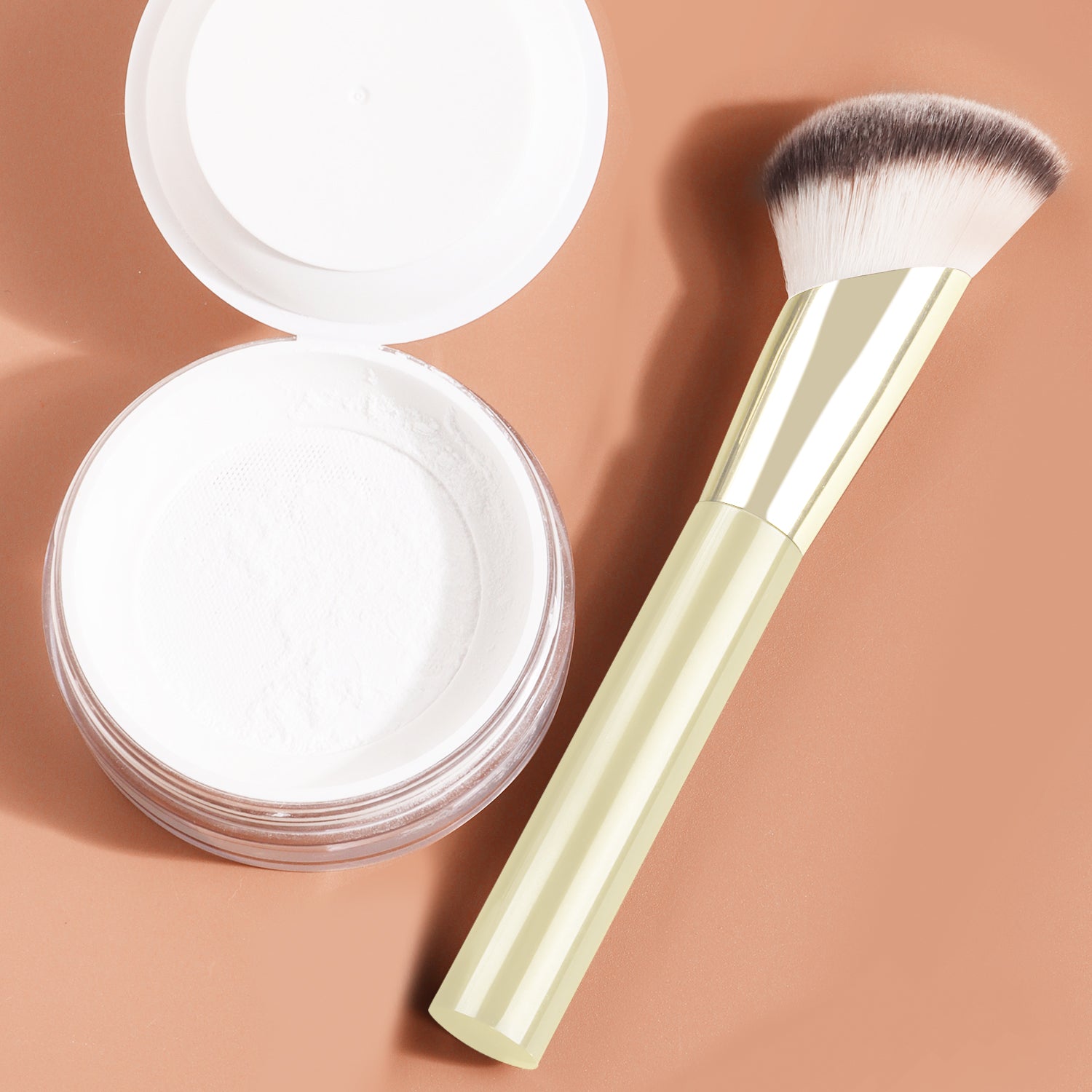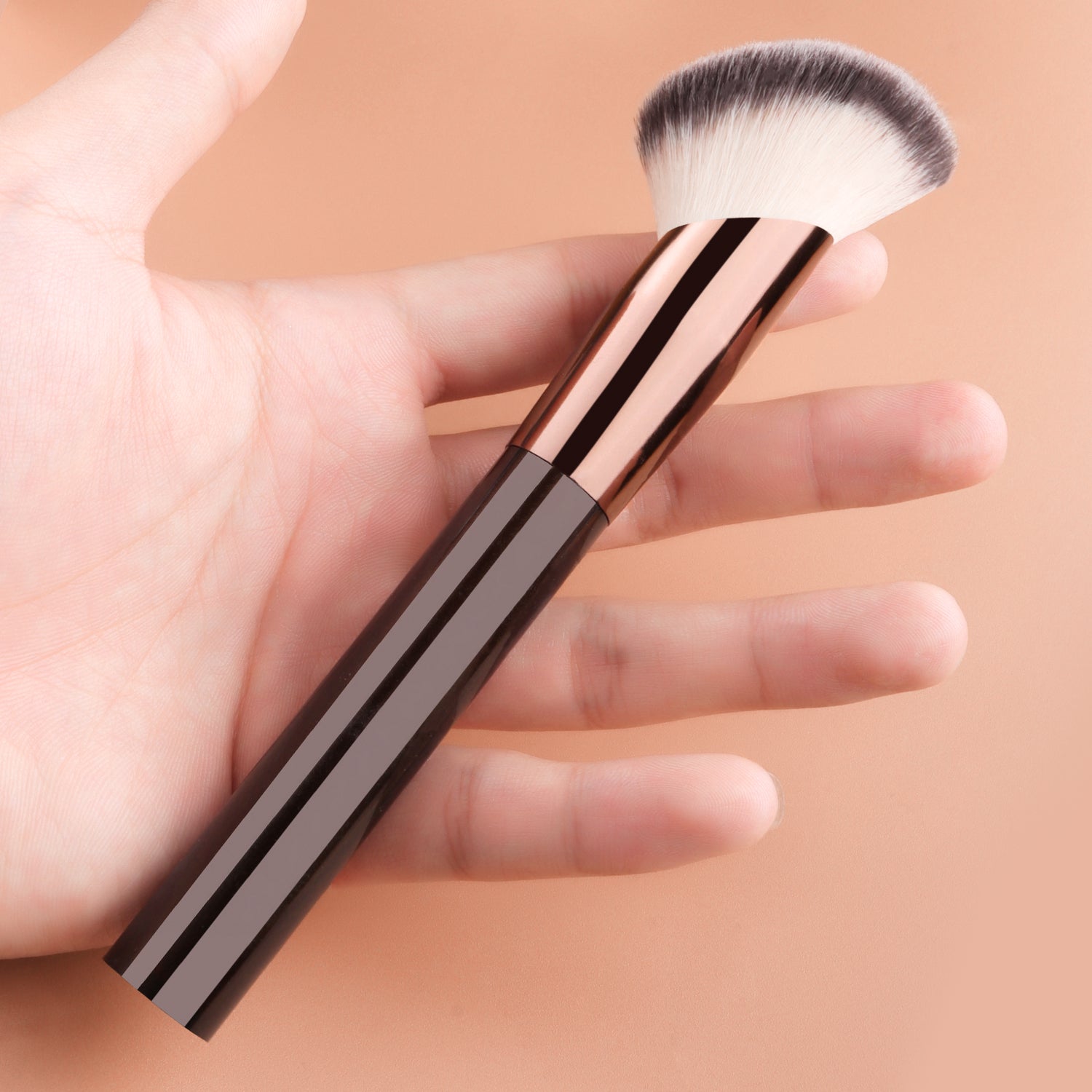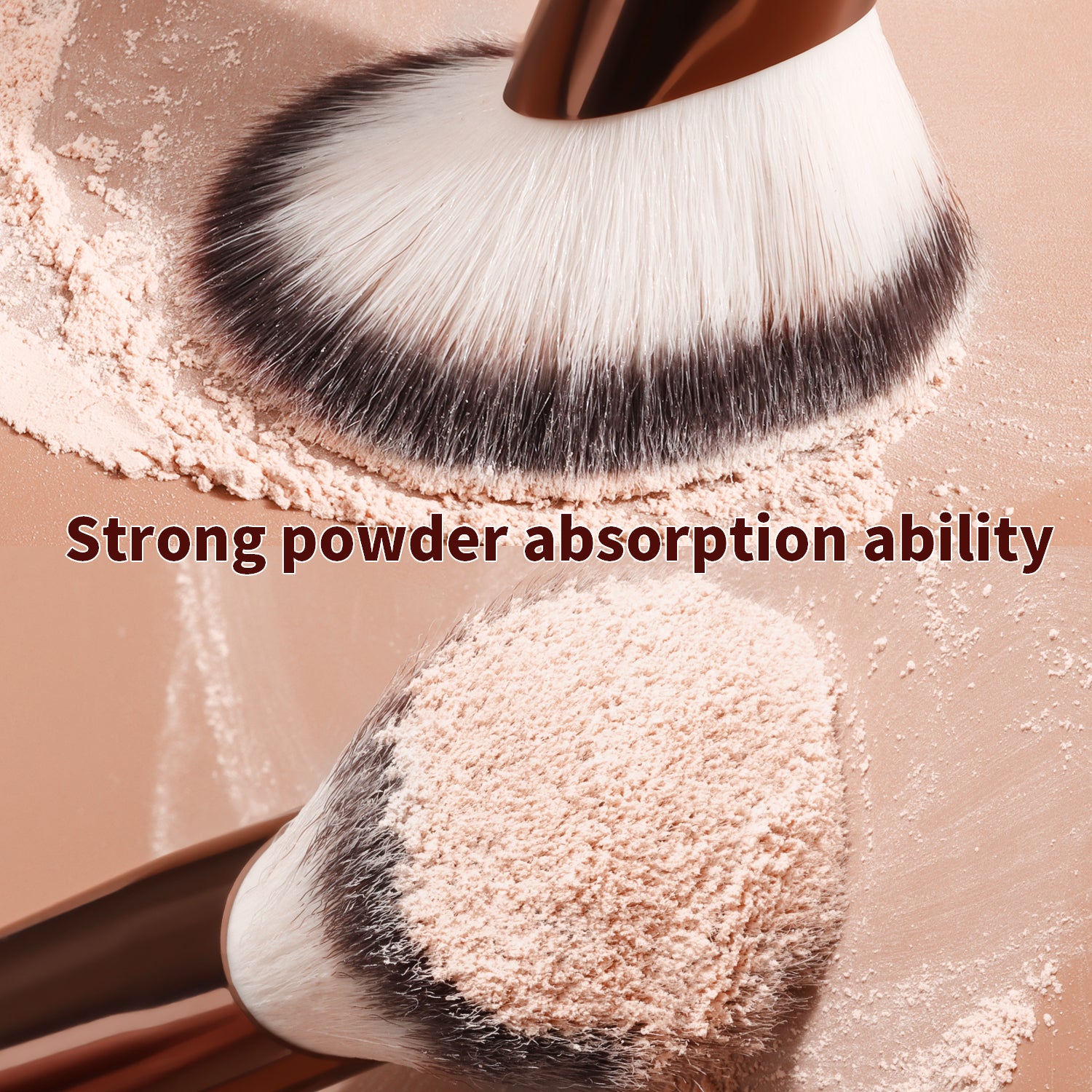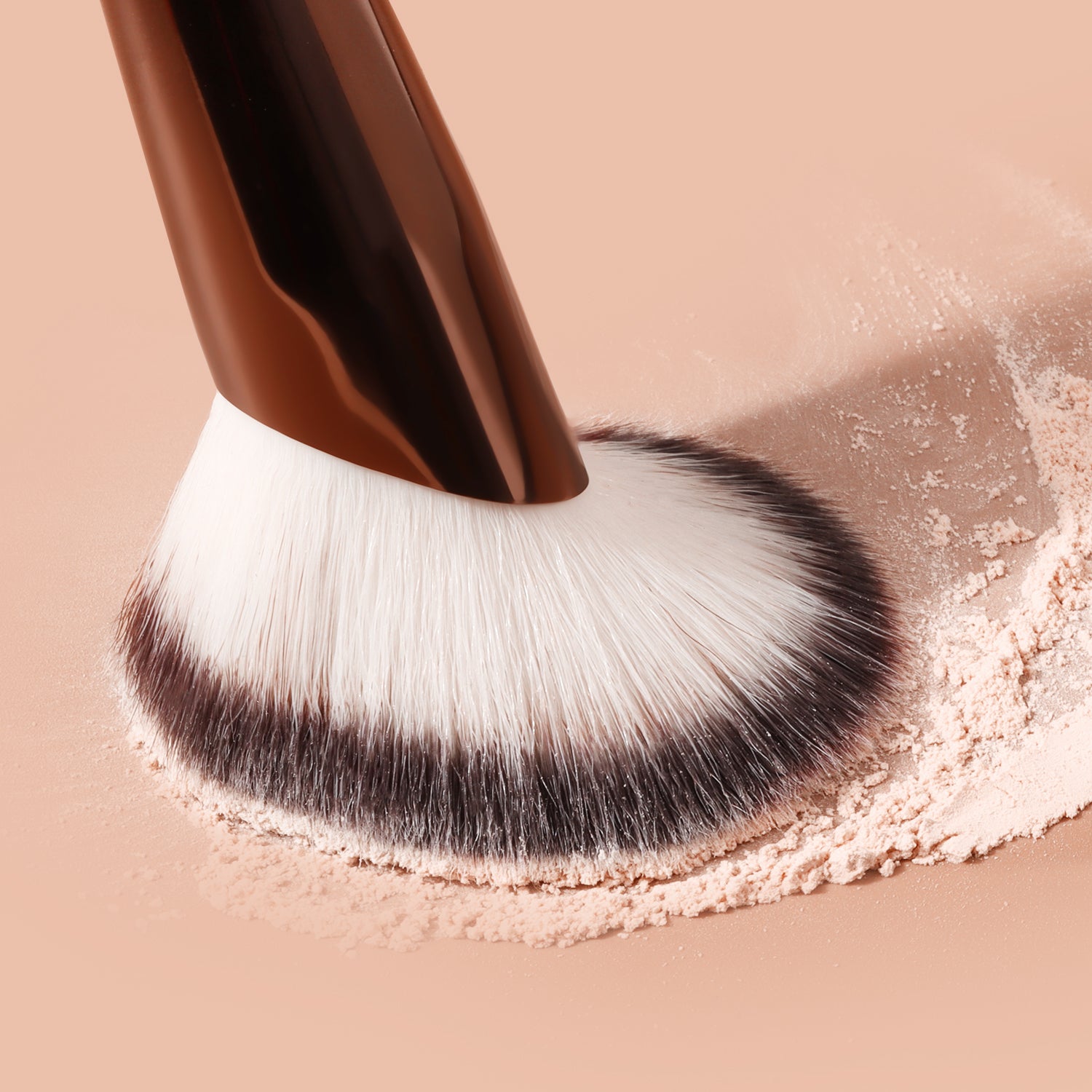 After dipping the brush into the product, gently shake off any excess powder. Apply makeup using a pressing and rolling technique (press and roll the foundation brush vertically, and blend the eyeshadow brush in a spiral motion). The aluminum-handled retractable brush uses a 45° angle to precisely contour the face, while the wooden-handled brush features a 32° anti-shake design for precise application.