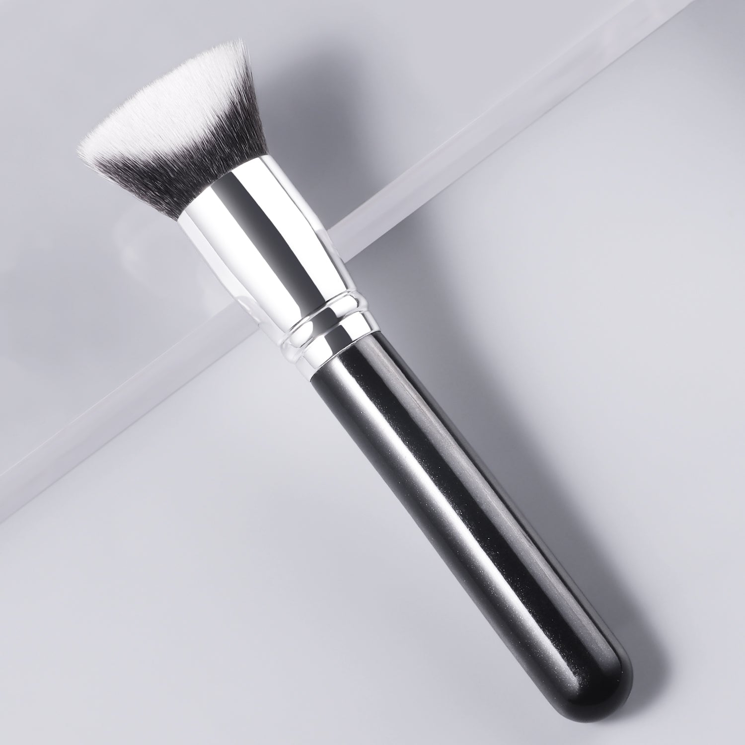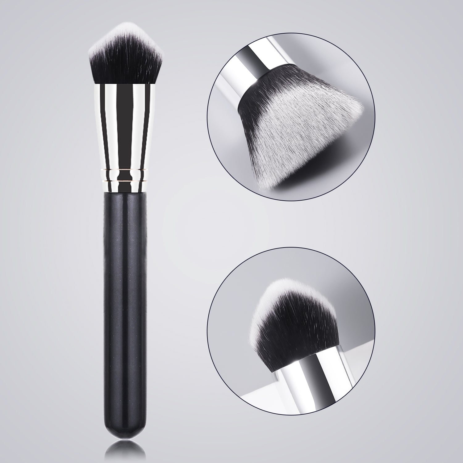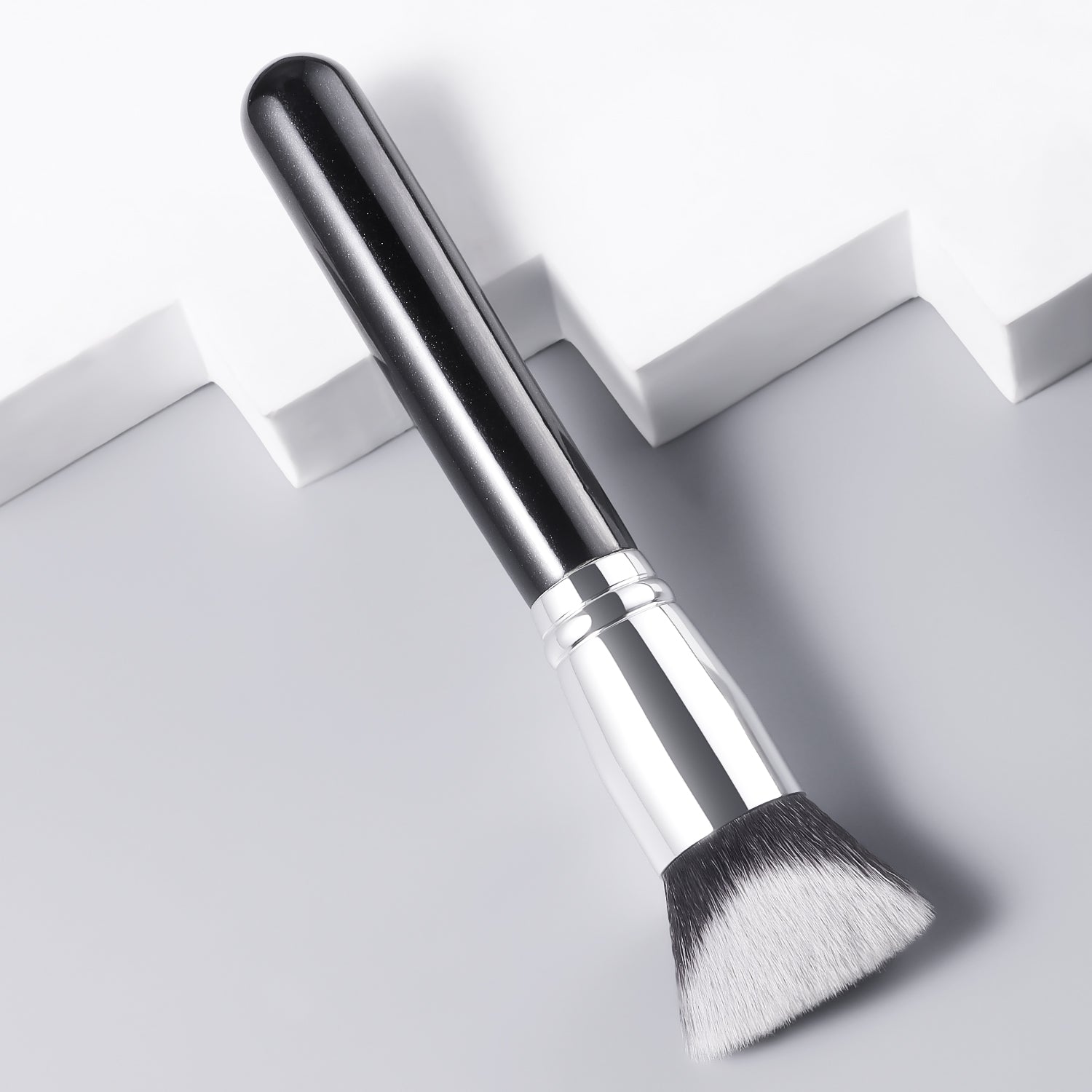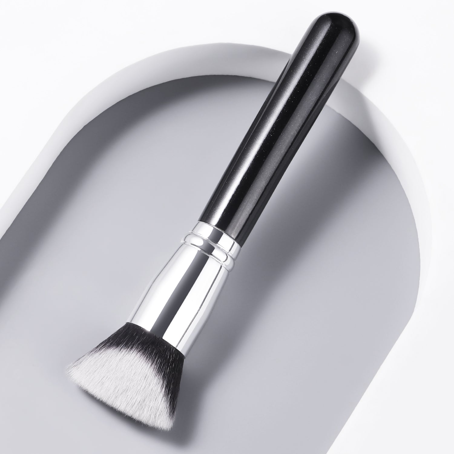 After dipping the brush into the product, gently shake off any excess powder. Apply makeup using a pressing and rolling technique (press and roll the foundation brush vertically, and blend the eyeshadow brush in a spiral motion). The aluminum-handled retractable brush uses a 45° angle to precisely contour the face, while the wooden-handled brush features a 32° anti-shake design for precise application.